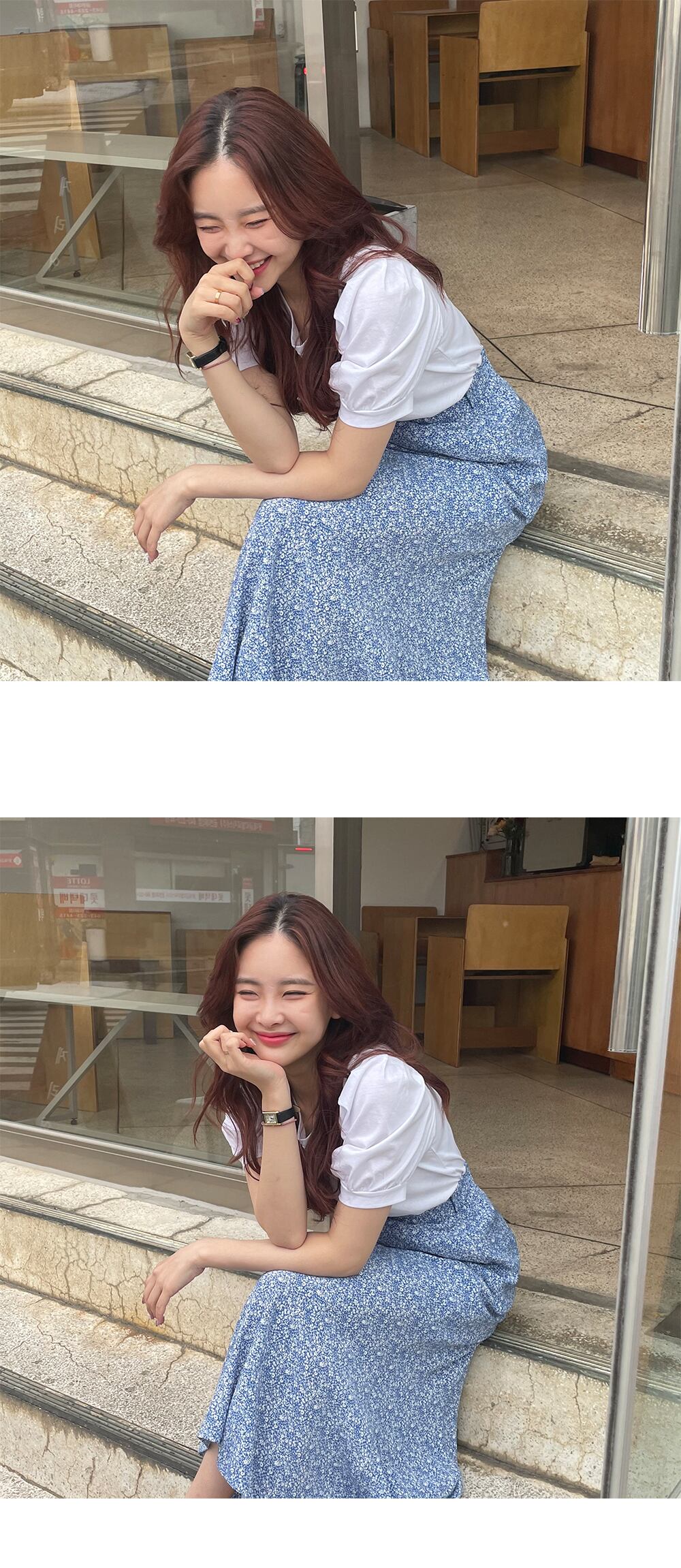スタイルラウンドネックスリーブホワイトTシャツ ハイウェストフローラルスカート サマー 夏物 花柄 Oネック 韓国婦人30980017811