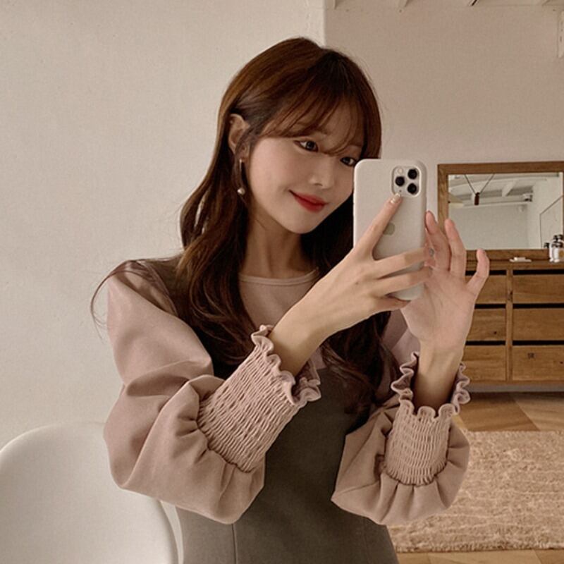 スタイルトップス スリーブソリッド カラーシャツ スプリング ランタンスリーブ 春物 ソリッドカラー 韓国婦人85500723001