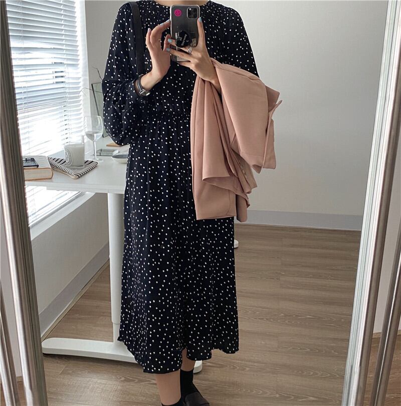 スプリングオータムスタンダード薄手スタイルドレス レトロ 春物 秋物 韓国婦人69603471209