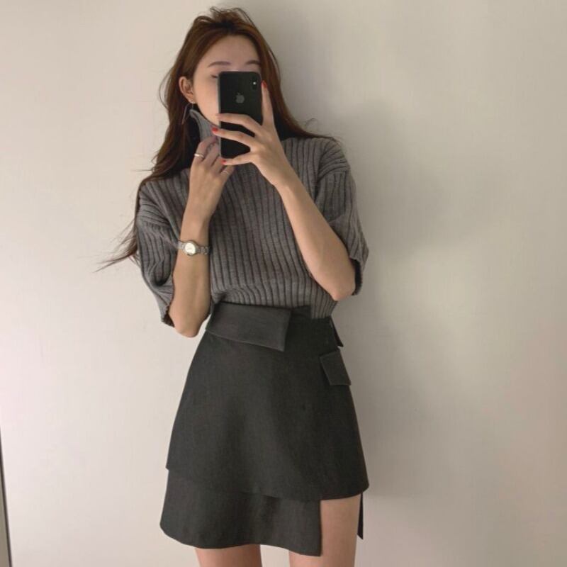 オータムセーター ハイウェストスカート ショート 秋物 韓国婦人86316721809