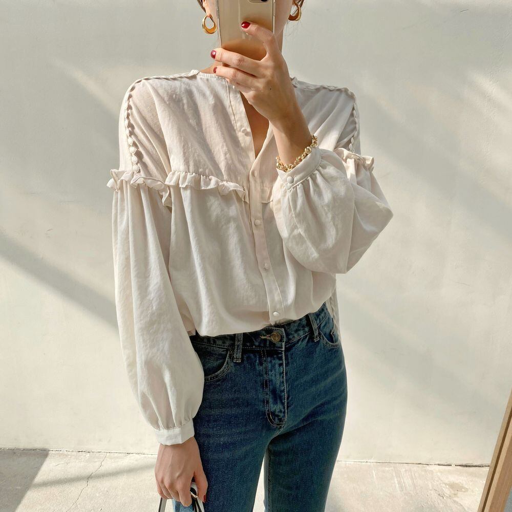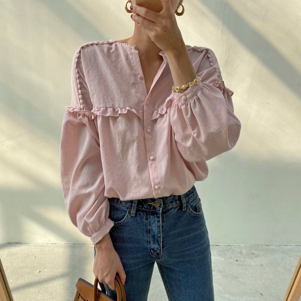 オータムブラウス 薄手シャツ ロング 大人ガーリー スウィート キュート カジュアル 秋物 韓国婦人67232393404