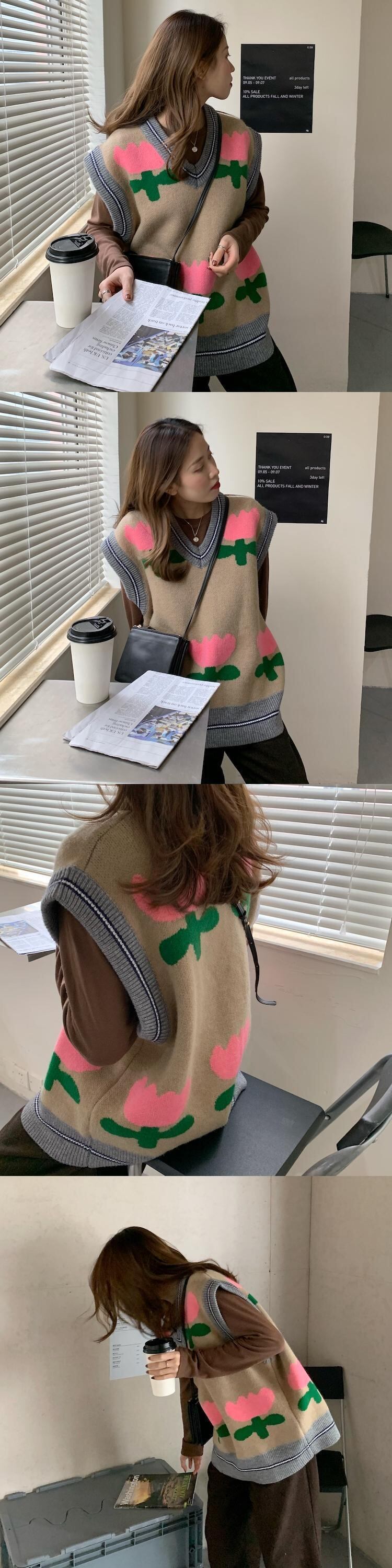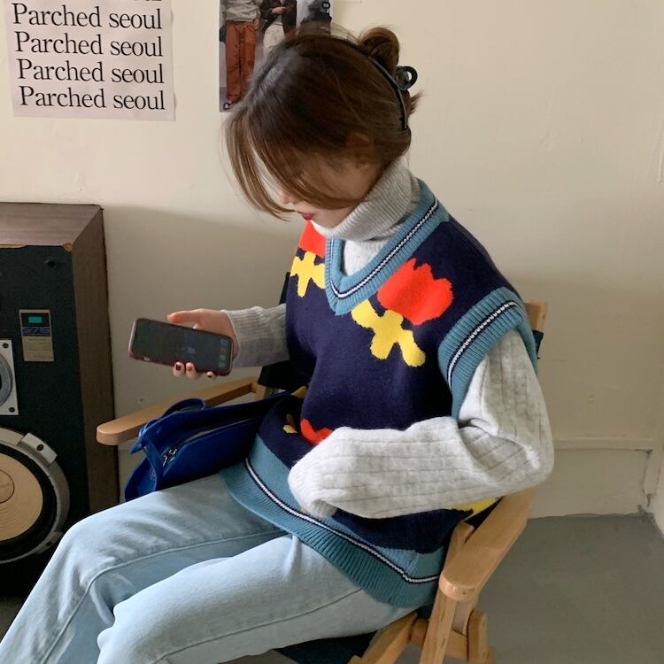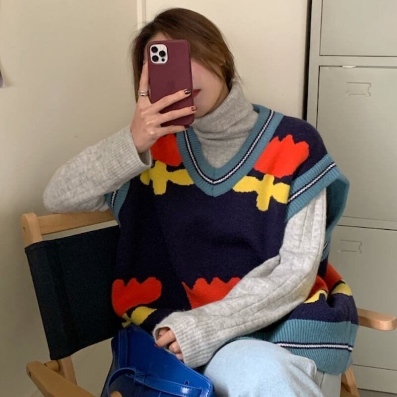オータムウィンターノースリーブセーター ルーズニットスタイル 秋物 冬物 韓国婦人40902832703