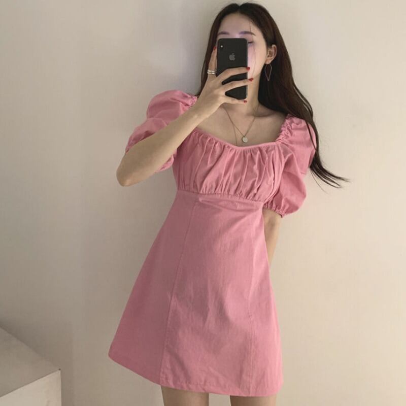 スカート スリーブドレス サマーウェストAライン 大人ガーリー スウィート キュート カジュアル 夏物 スクウェア 韓国婦人88667920472