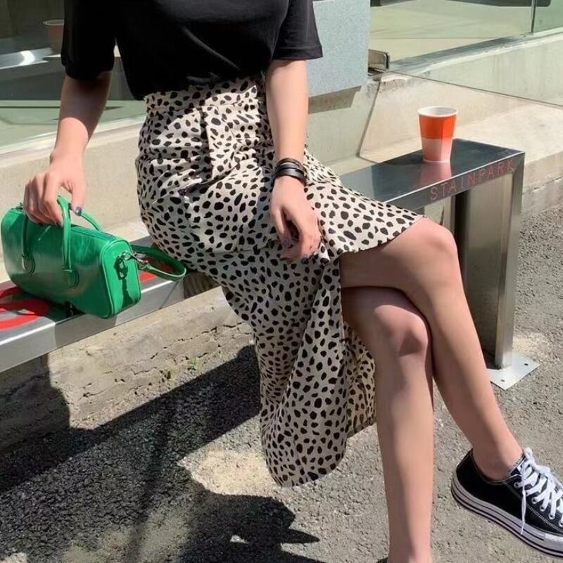 シフォンスカート サマースリットハイウェストウェストレオパードプリント柄薄手 夏物 韓国婦人50900354687