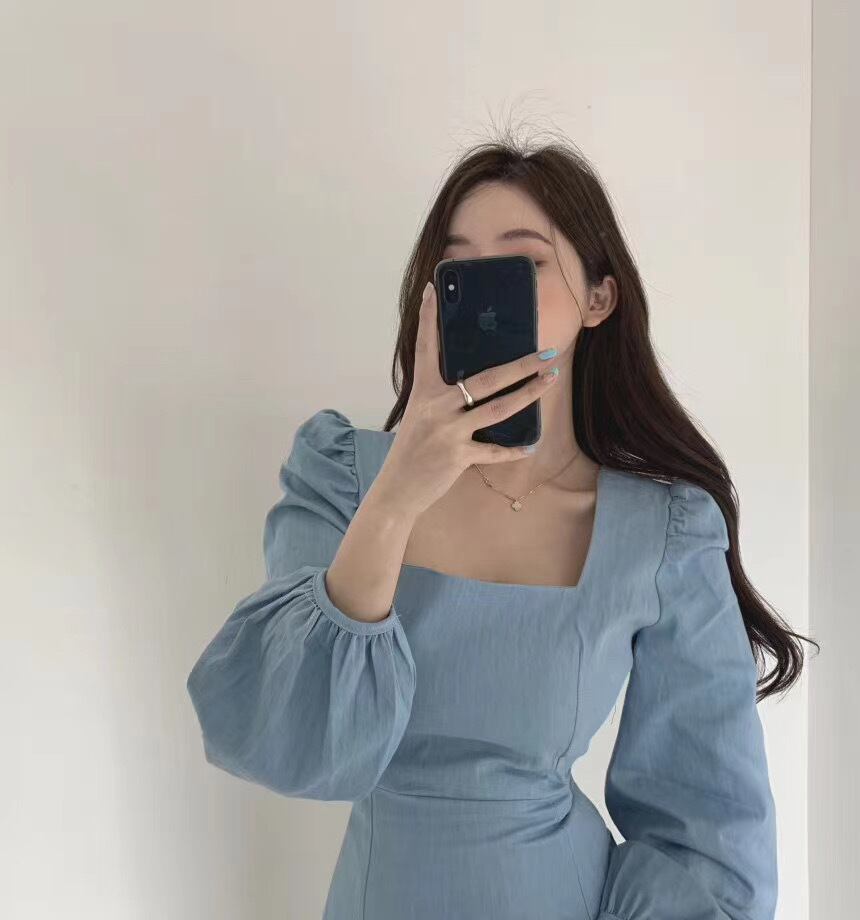 スプリングスリーブショートスカート 薄手スタイルドレス 春物 スクウェア 韓国婦人96313797131