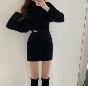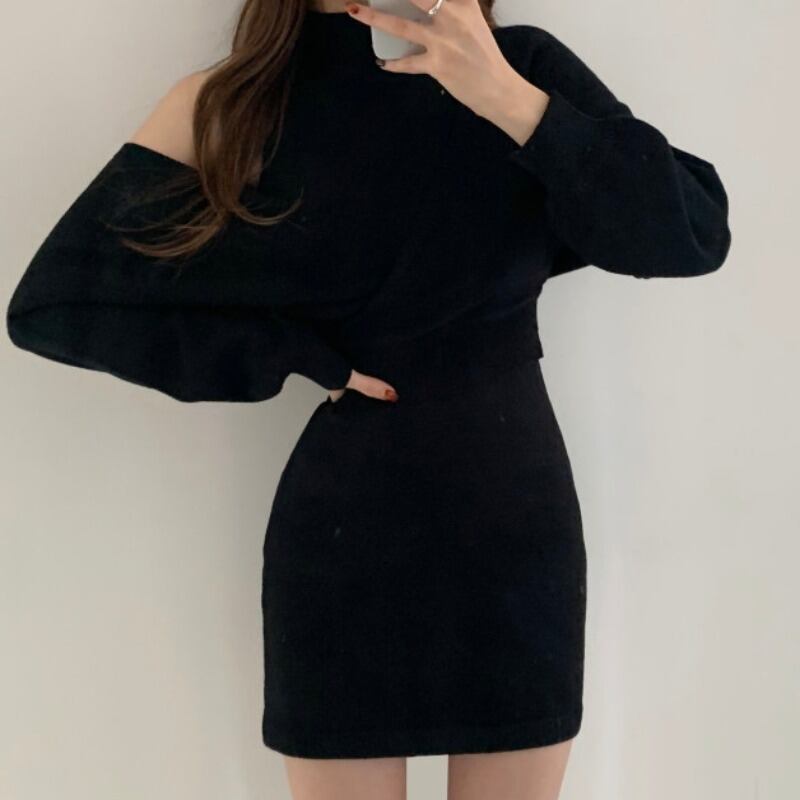 スプリングオータムスタンダードニットストラップレスセーター ドレス レトロ 春物 秋物 韓国婦人29636166225