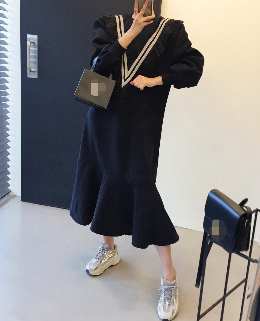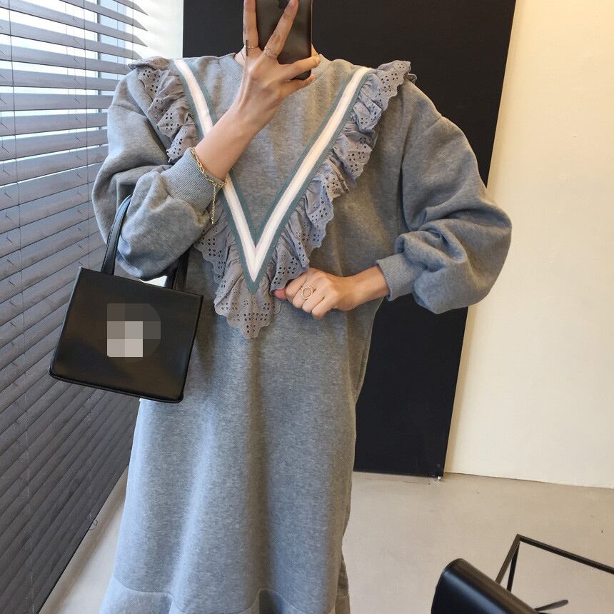 スプリングオータムスタンダードスリムレースロングスカート セーター ドレス レディース レトロ 春物 秋物 ステッチ 韓国婦人91549368832