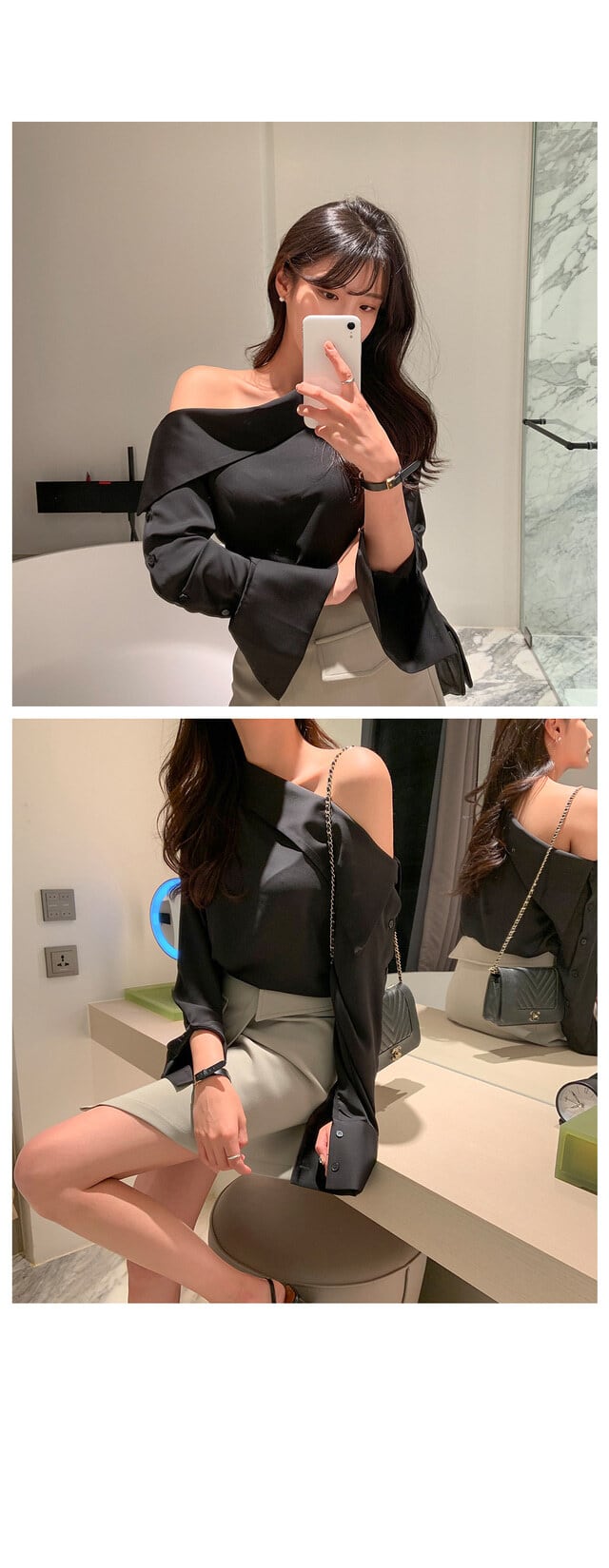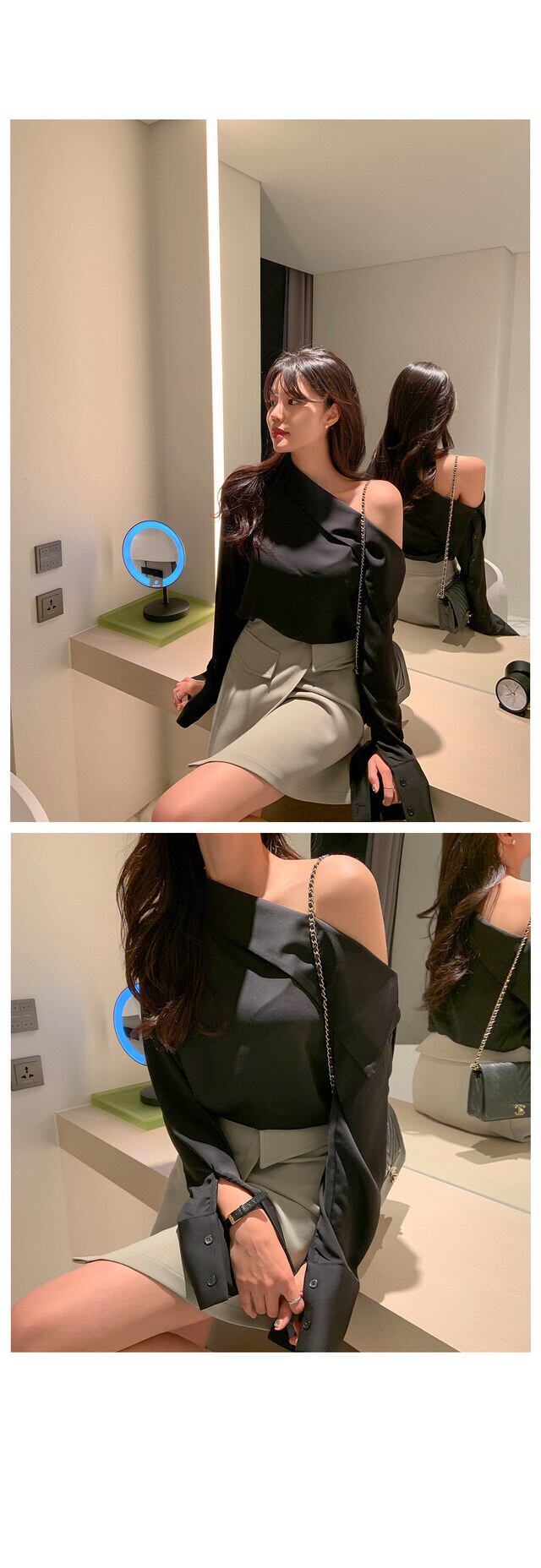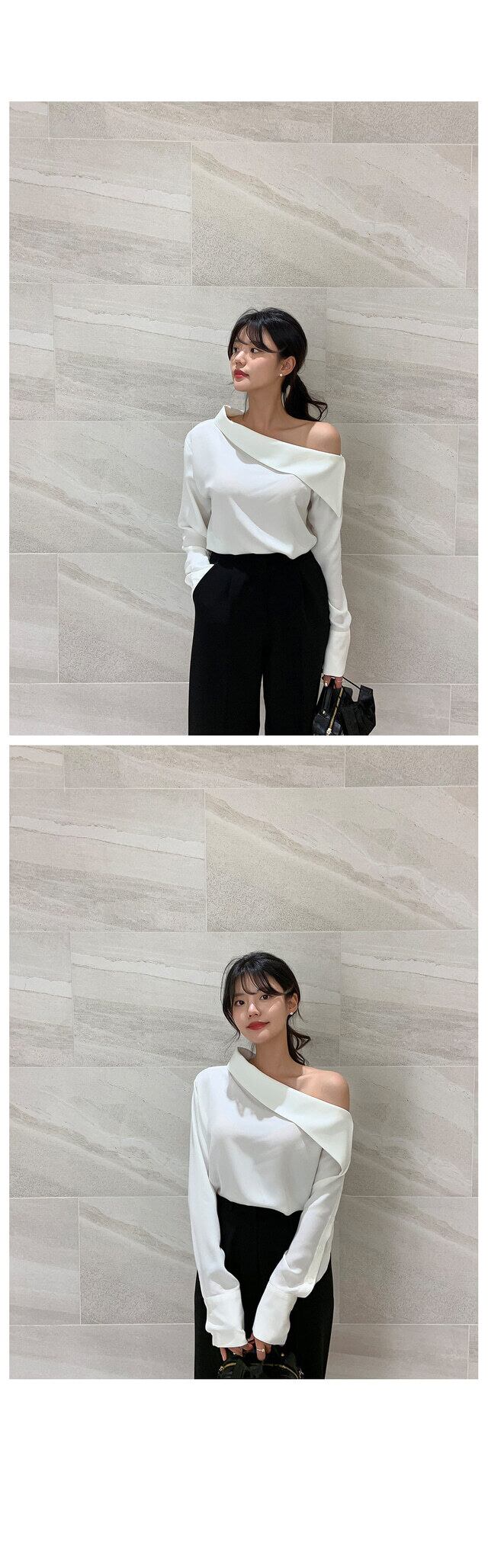 スプリングホワイトトップス シャツ レディース ロング 春物 オフショルダー 韓国婦人17517596061