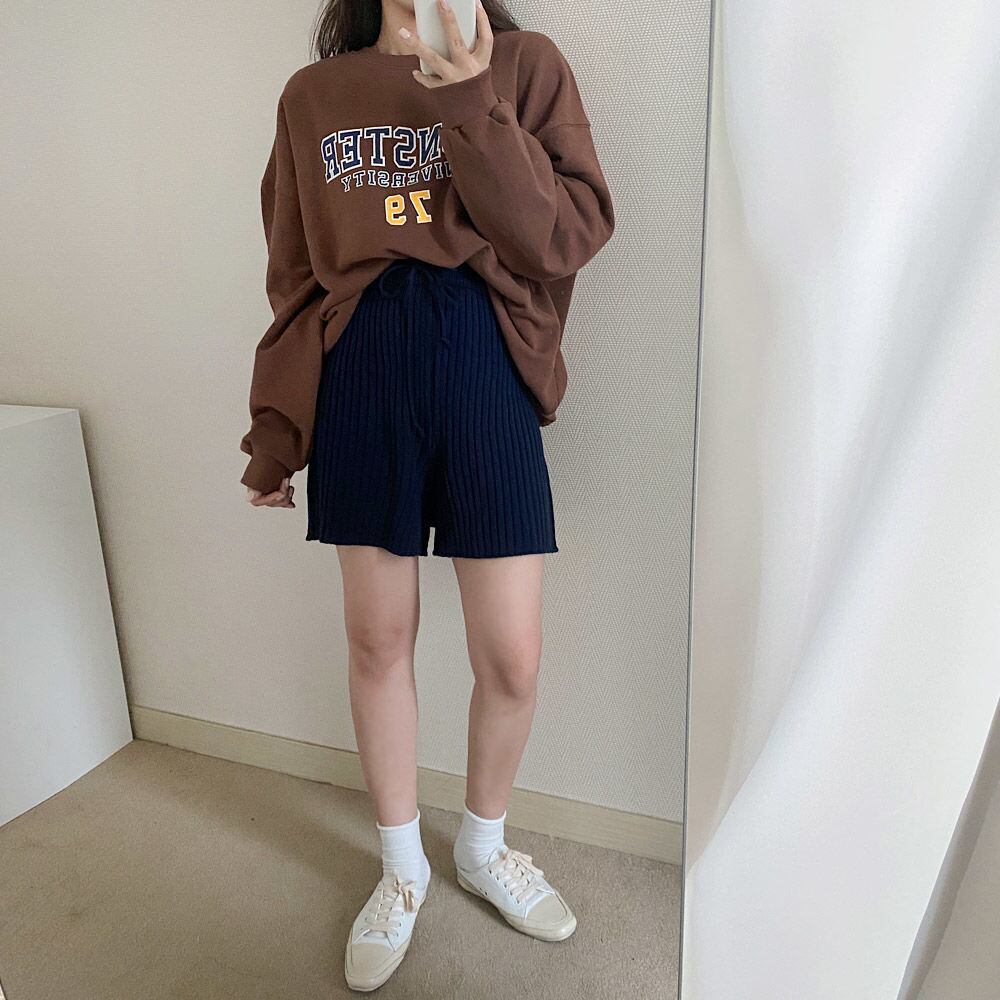 ルーズプリントセーター ハイウェストニットカジュアルショーツ レディース ロング ブルマー 韓国婦人88198923349
