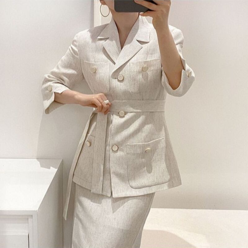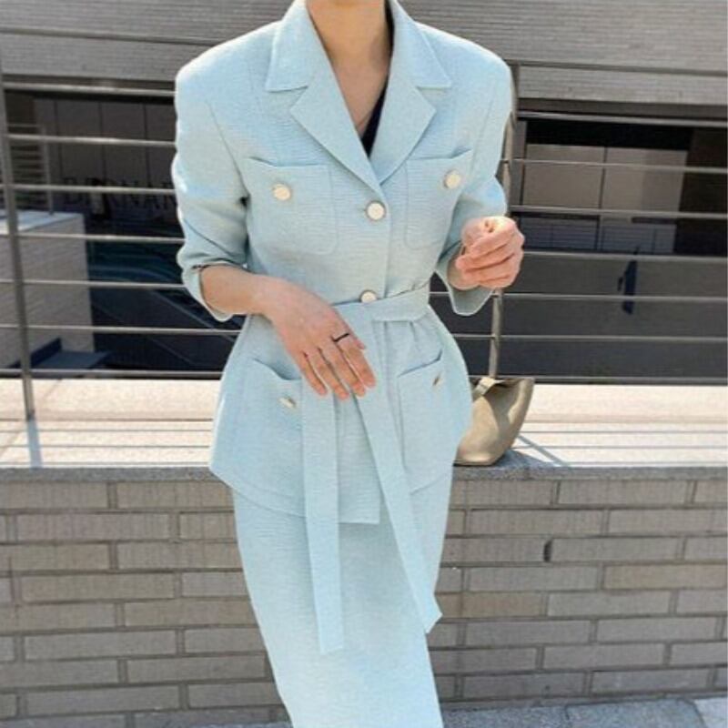 オータムスタイルジャケット ハイウェスト薄手スカート スリット ロング 秋物 韓国婦人41685186057