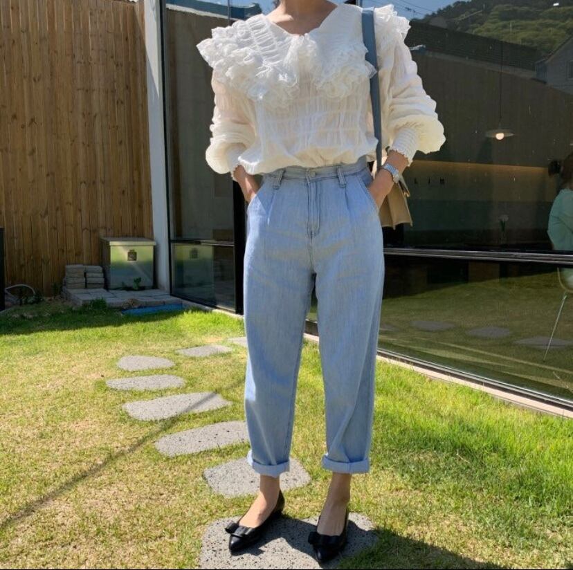 オータムスタイルスタンダードプリーツスリーブシャツ レディースルーズトップス レトロ レース 秋物 韓国婦人9951835924