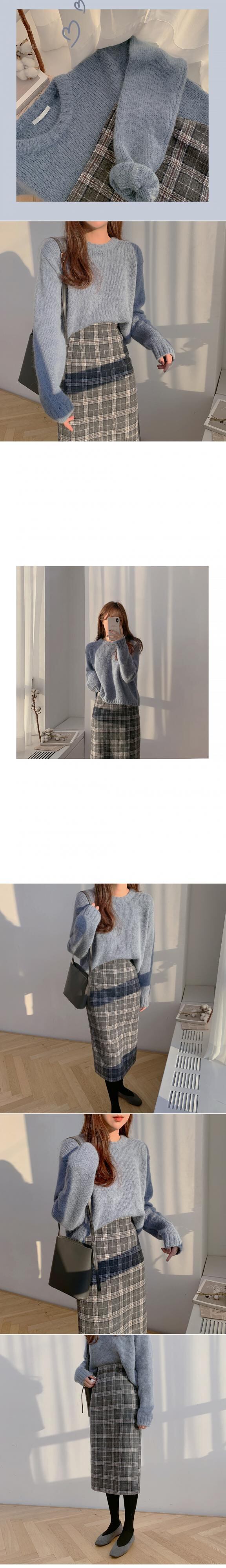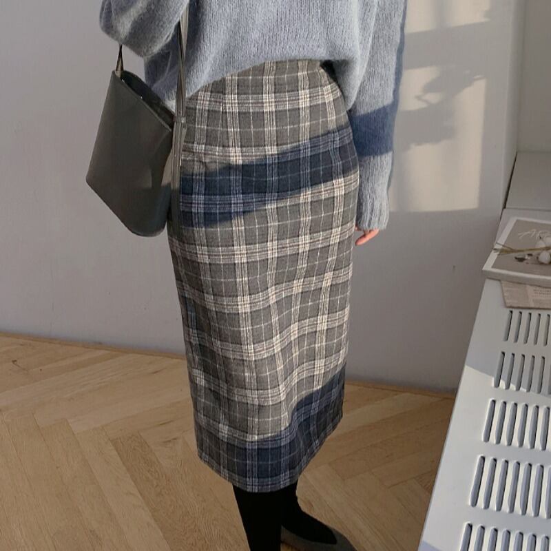 オータムウィンタースタンダードハイウェストスリム格子柄スカート レッド レトロ 秋物 冬物 韓国婦人7903547032