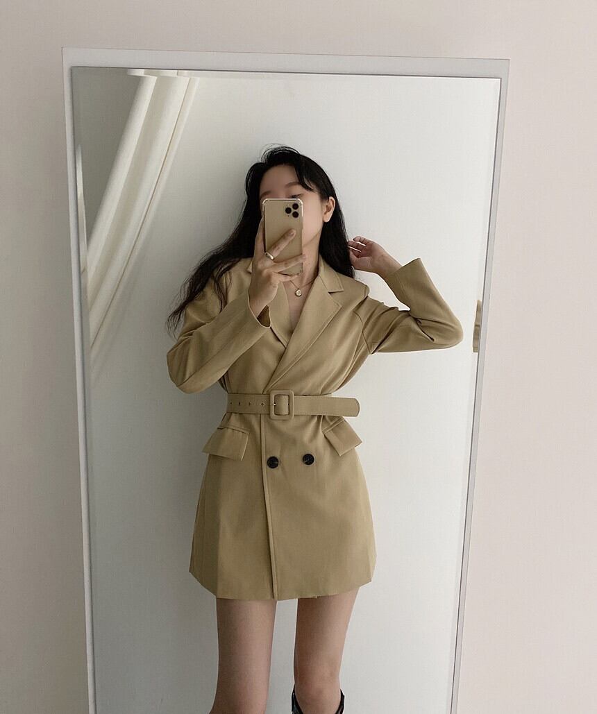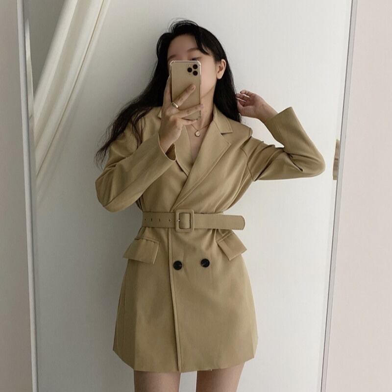 オータムウィンターダブルブレストスタイルウェスト薄手ジャケット レース 秋物 冬物 レースアップ 韓国婦人63423389085