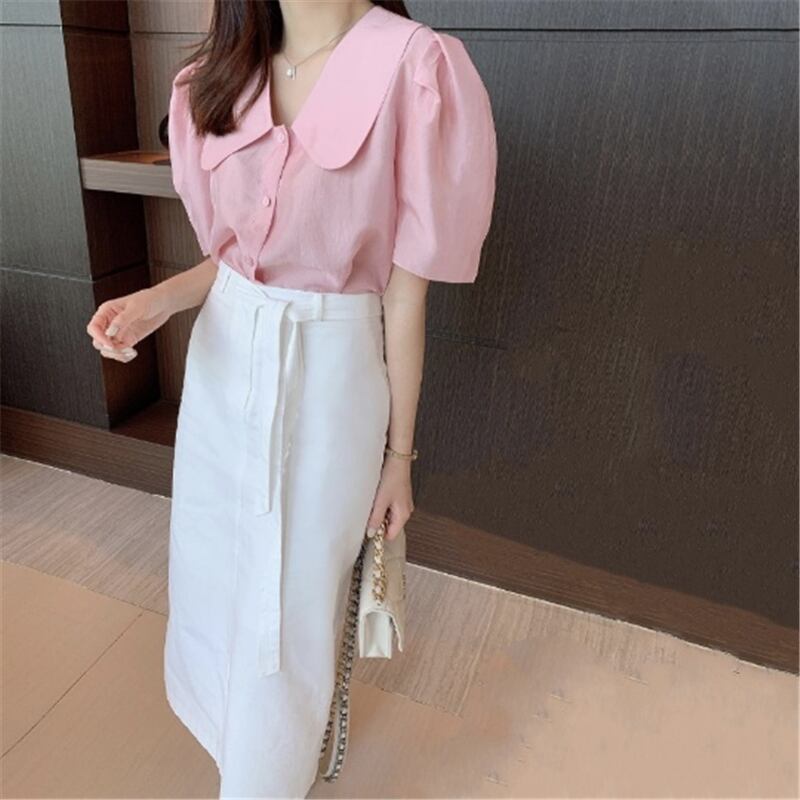 スタイルカラーシャツ サマー ピンク レース ストリート 夏物 スカート レースアップ 韓国婦人83006890191