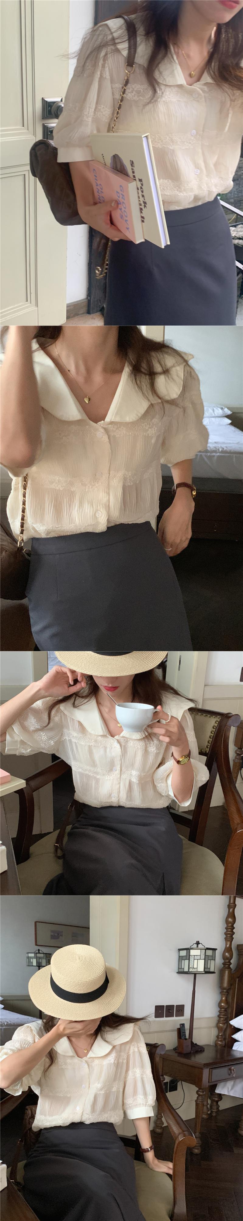 サイドカラールーズシャツ レーススリーブトップス サマー 大人ガーリー スウィート キュート カジュアル 夏物 韓国婦人83993046459
