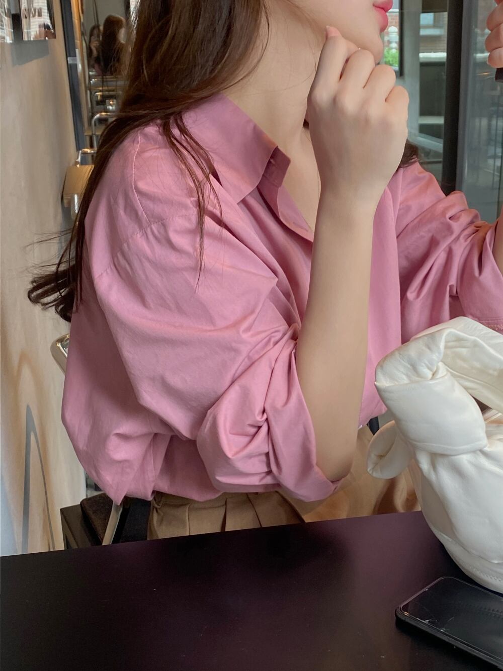 ホワイトルーズカジュアル薄手シャツ トップス レディース ロング ピンク 韓国婦人13913967391