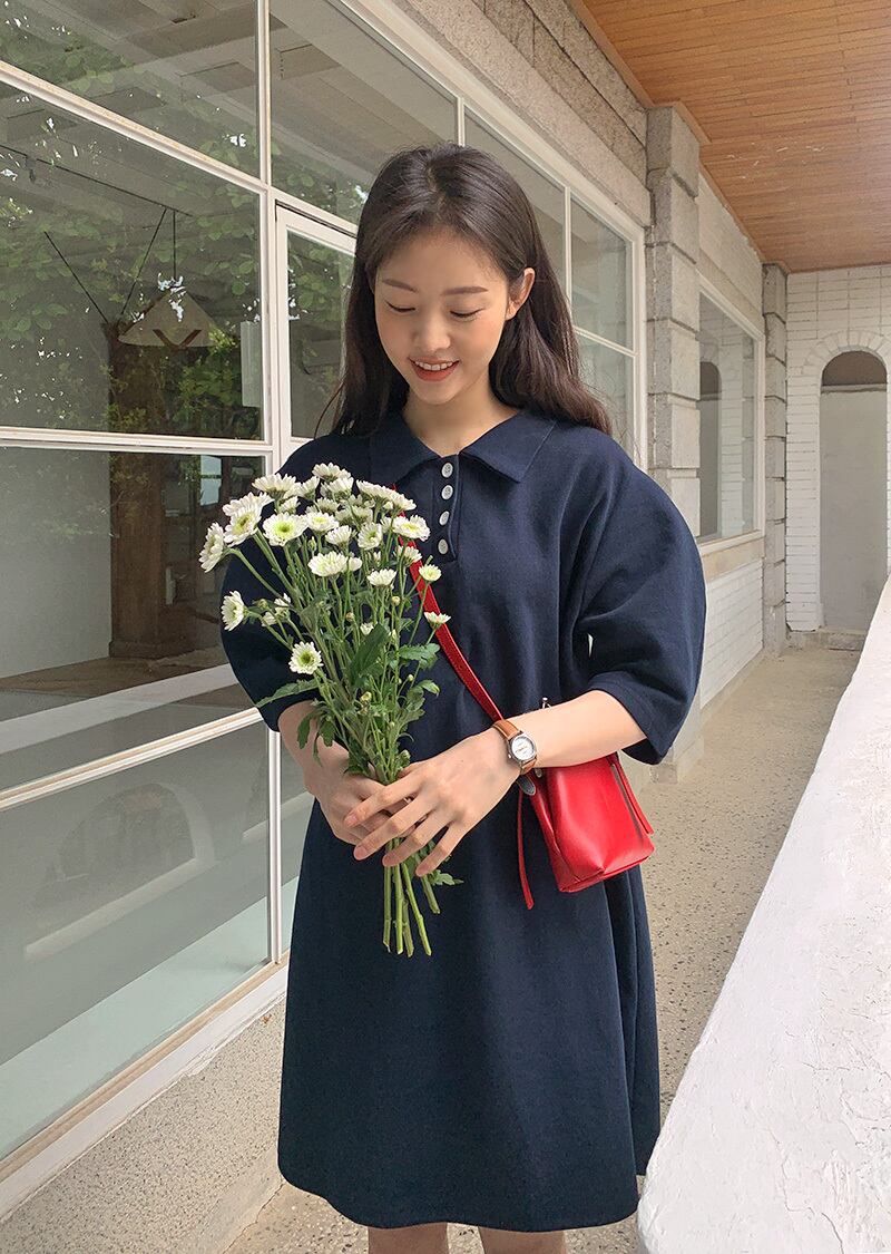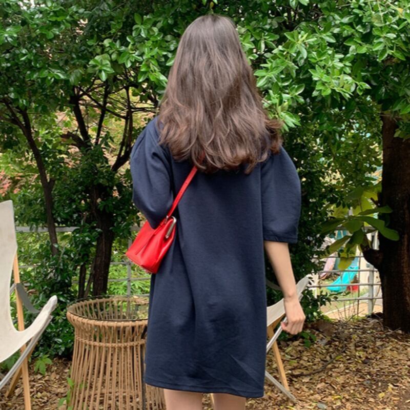 スタンダードスタイルカラースリーブドレス サマーカジュアルルーズスカート レトロ 夏物 韓国婦人49907586359