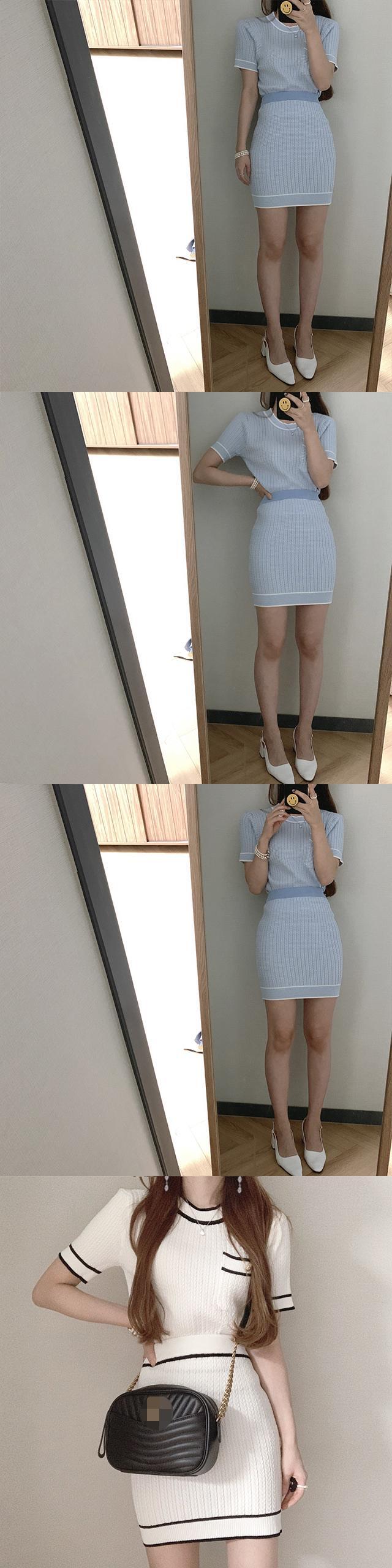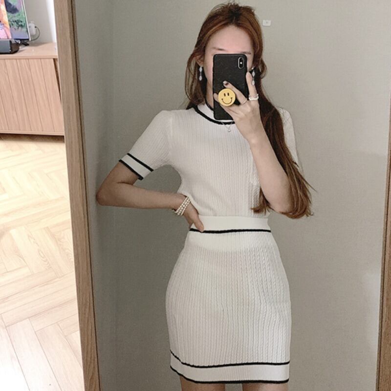 ラウンドネックショートトップス ニットサマー 夏物 スカート Oネック 韓国婦人54788907185