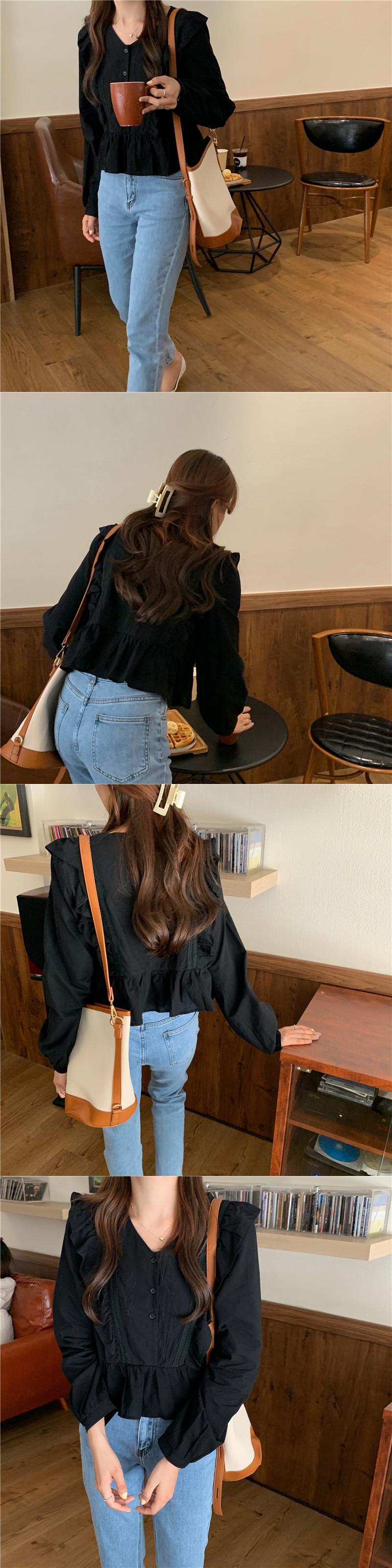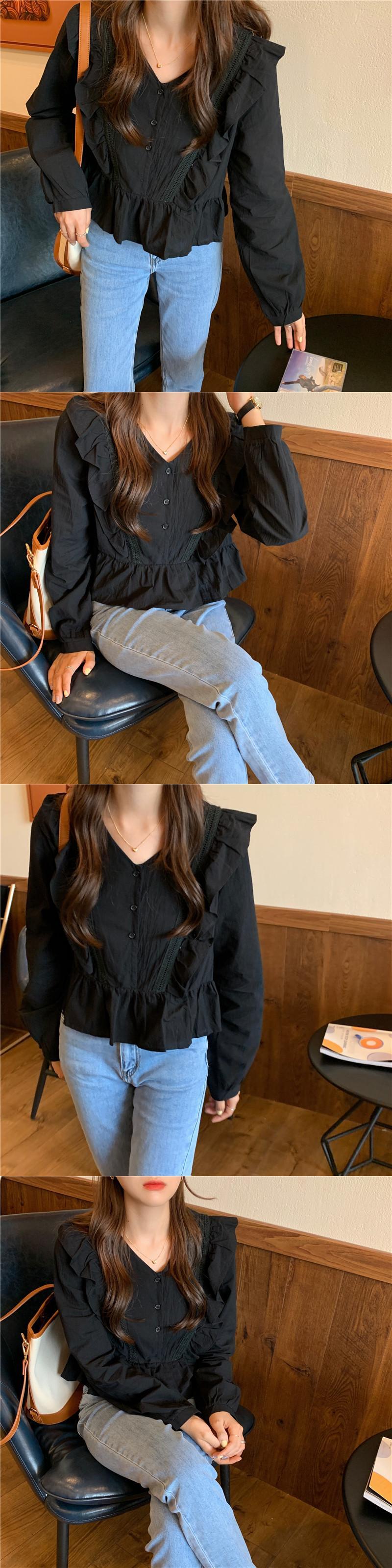 スタンダードスタイルシャツ スプリングオータムルーズVネックブラウス レディース ロング レトロ 春物 秋物 韓国婦人63254495347