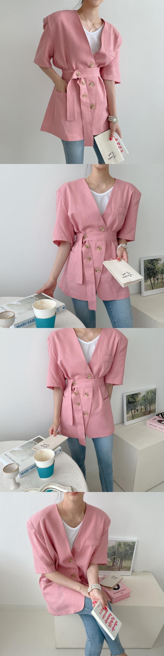 ジャケット サマースタンダードスタイルVネックダブルブレストカジュアルルーズウェストカーディガントップス レトロ 夏物 韓国婦人63838355346
