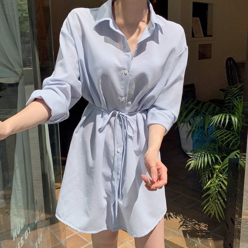 スタイルブルーシャツ スカート サマーウェストスリムドレス 夏物 韓国婦人64530347882