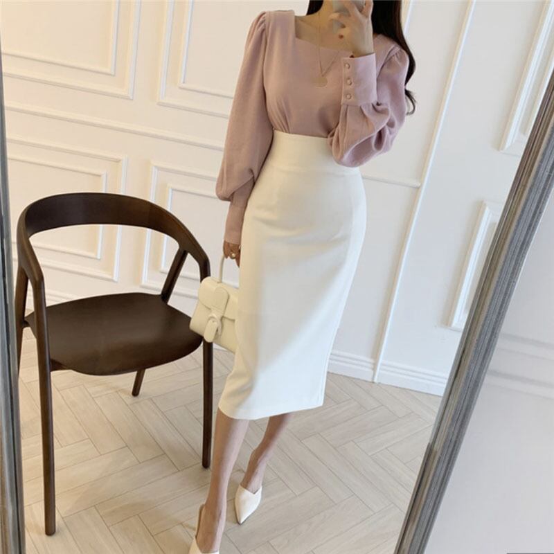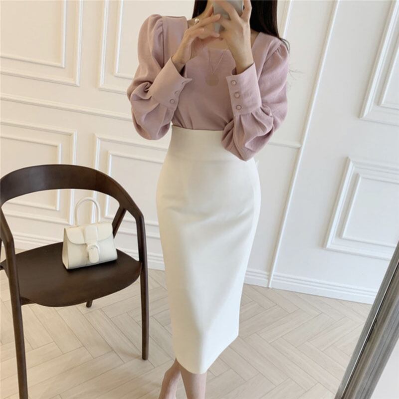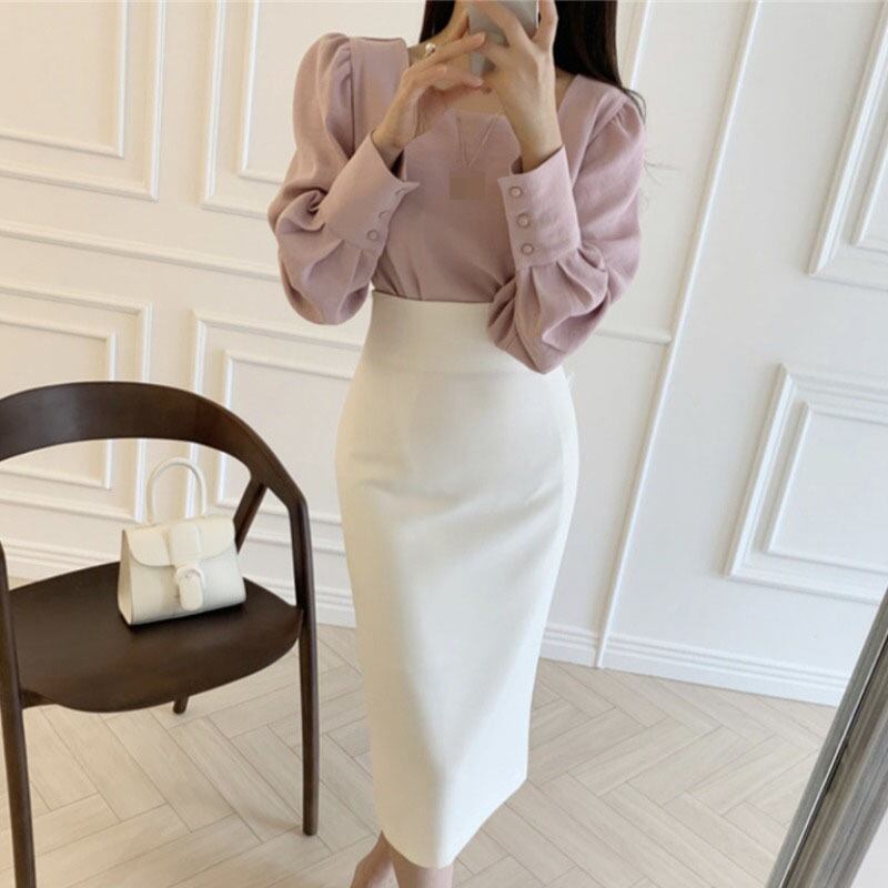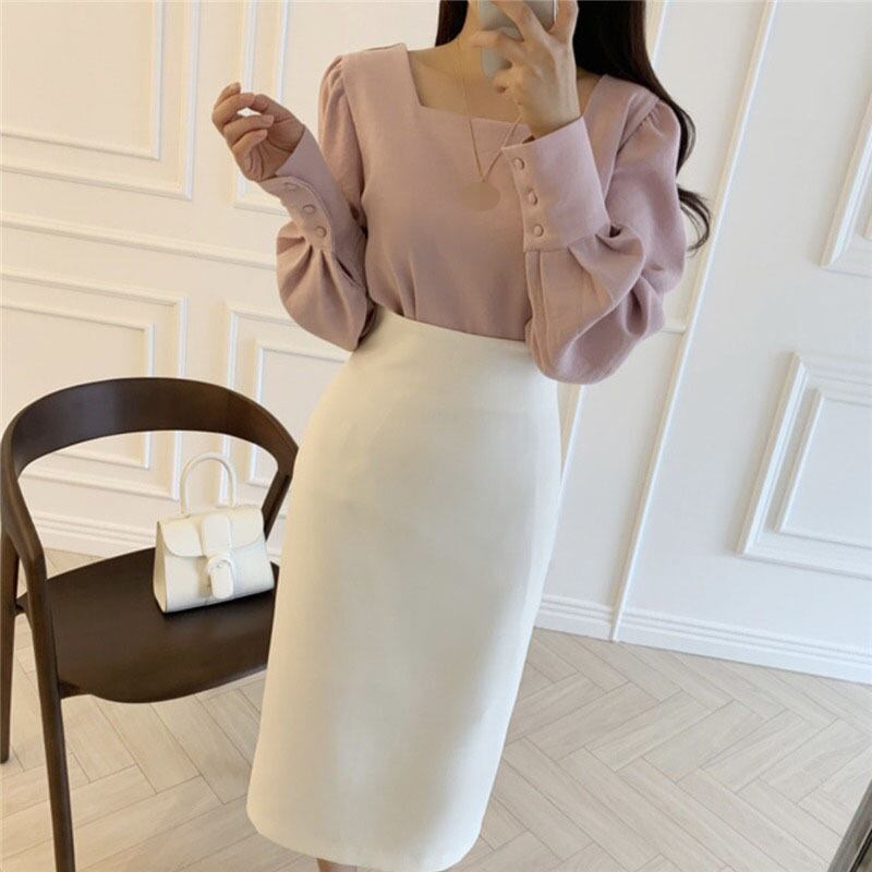 スプリングスタイルシャツ ハイウェストスカート レッド ロング 春物 スクウェア 韓国婦人57503453865