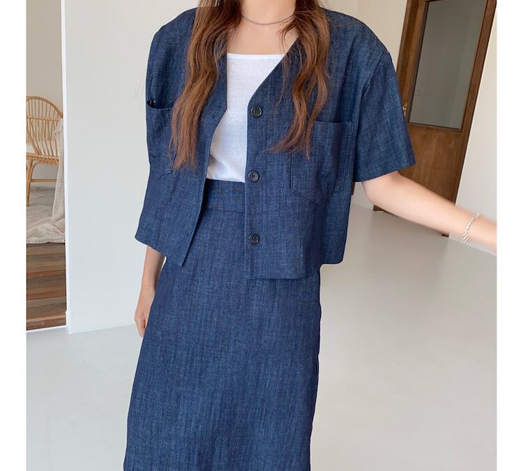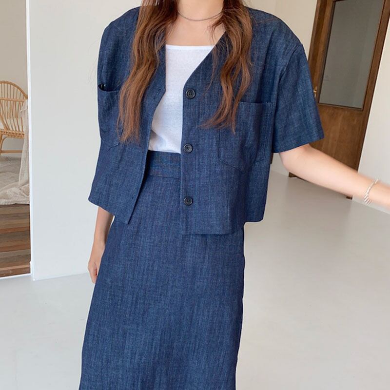スタンダードVネックジャケット スカート カジュアルサマースタイル レトロ 夏物 韓国婦人82553954772