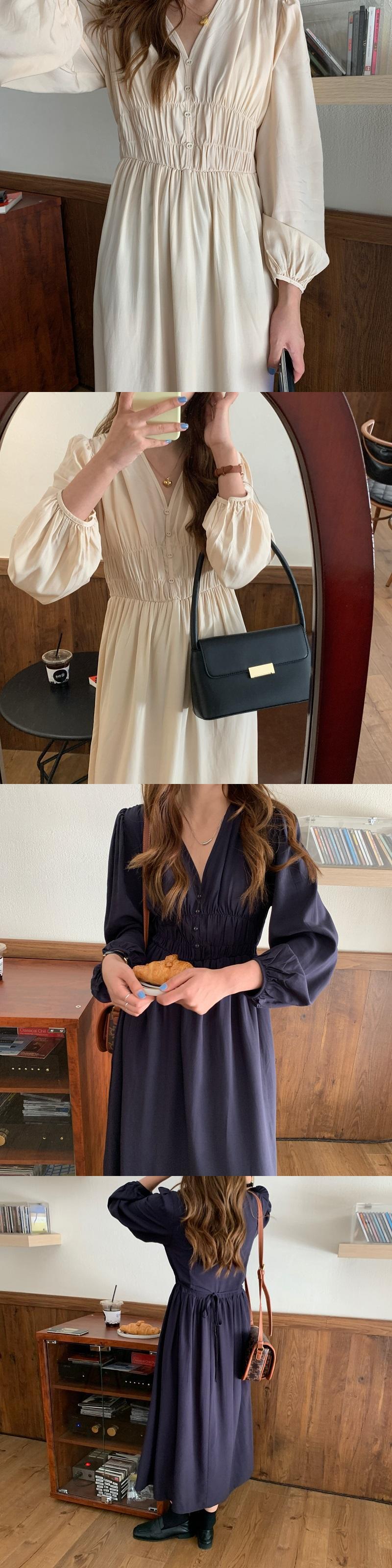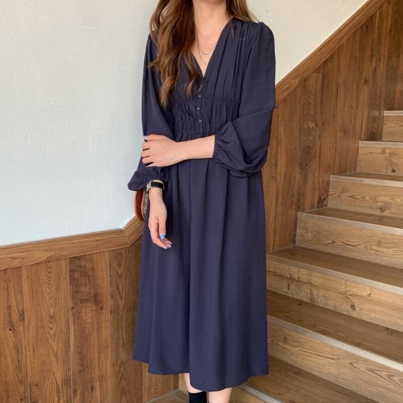 スプリング薄手Vネックプリーツウェストドレス レディース ロング レース エレガント 春物 レースアップ 韓国婦人98393938408