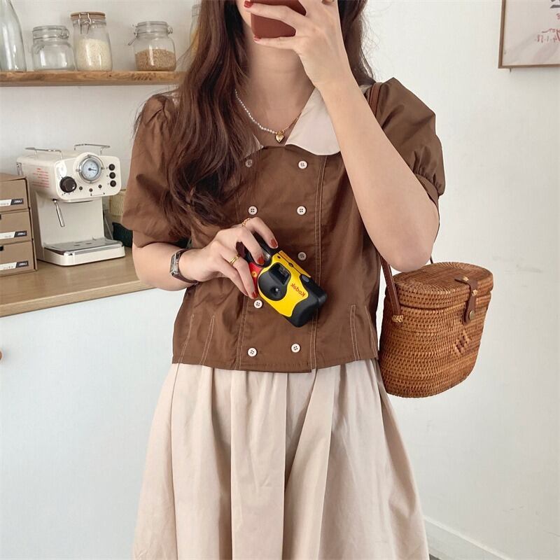 カラーシャツ スカート スタンダードカジュアルサマー レトロ 夏物 ステッチ 韓国婦人2437490819