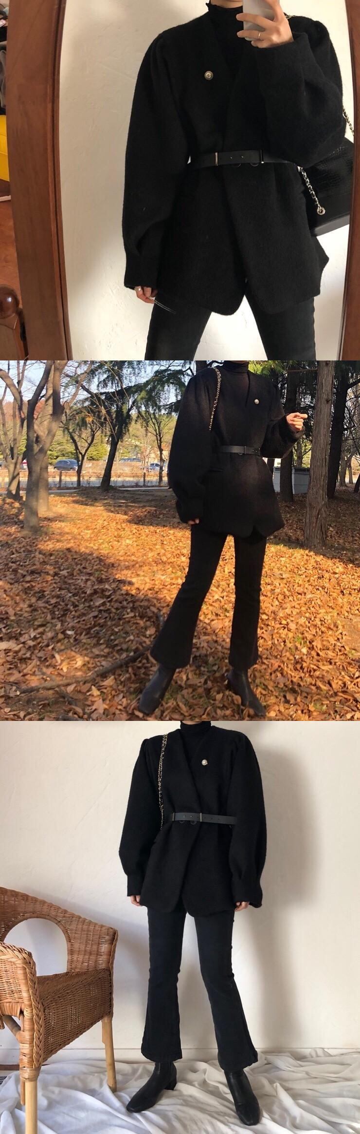 オータムウィンターダークブラックVネックダブルブレスト薄手ウェストコート ベルト レディース ロング 秋物 冬物 ハーネス 韓国婦人45166993971