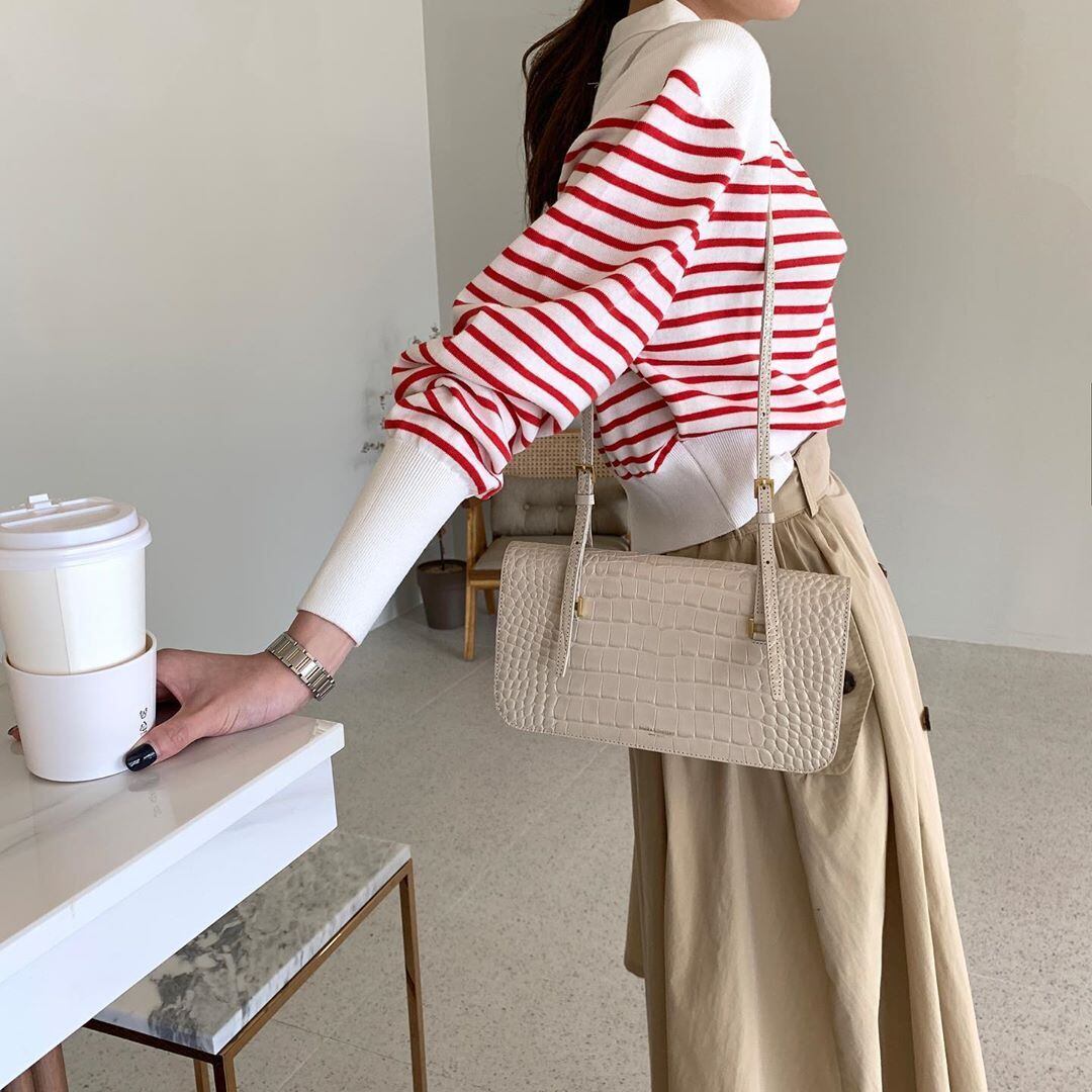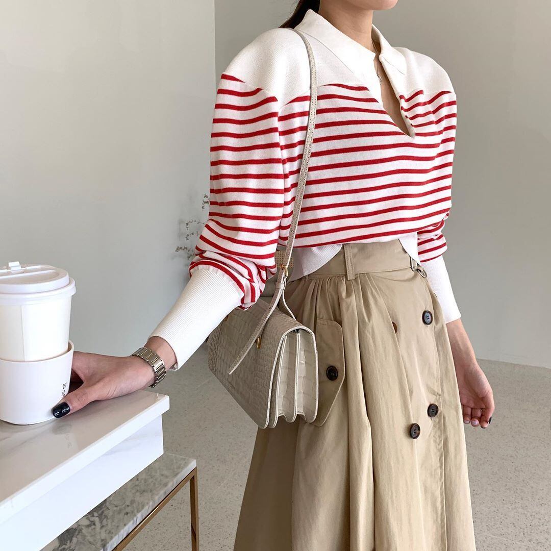 スプリングスタイルストライプショートスリーブプルオーバー 長袖セーター レディース ロング 春物 韓国婦人19423341271