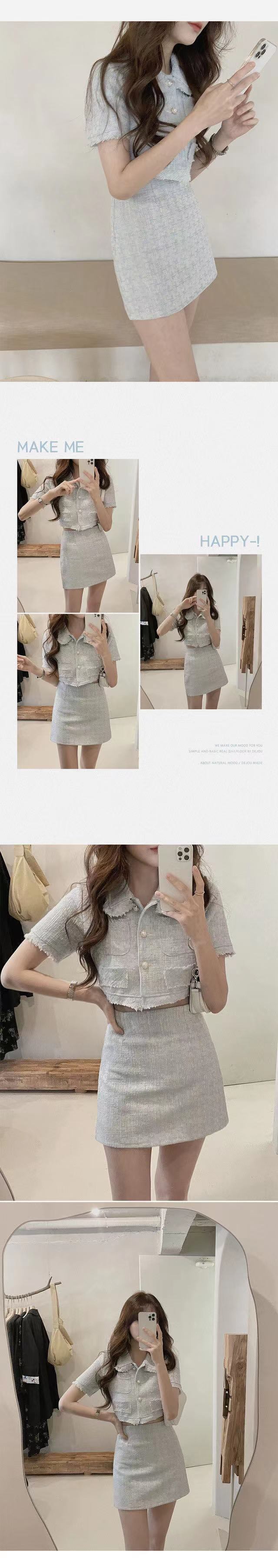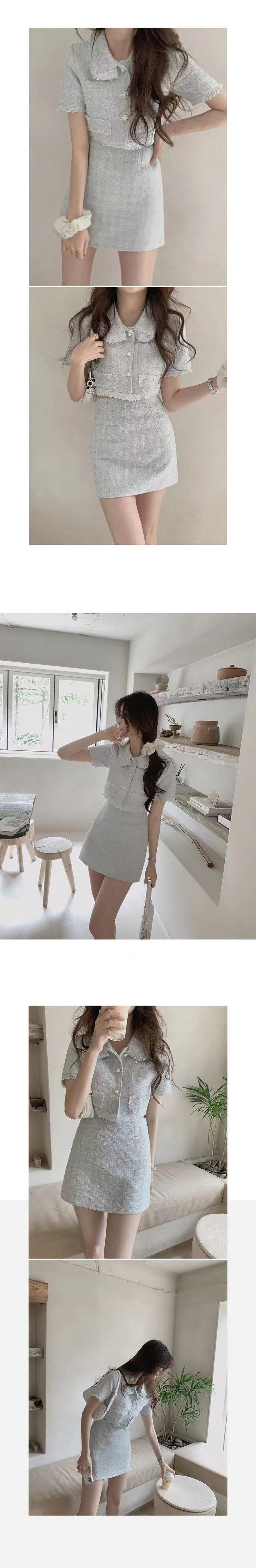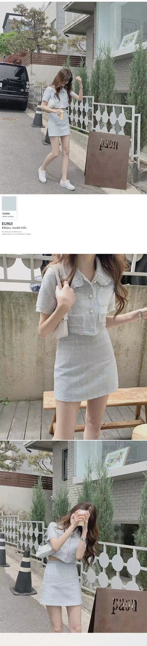 スタンダードブルーショートコート ジャケット Aラインスカート サマー レトロ 夏物 韓国婦人14891876557