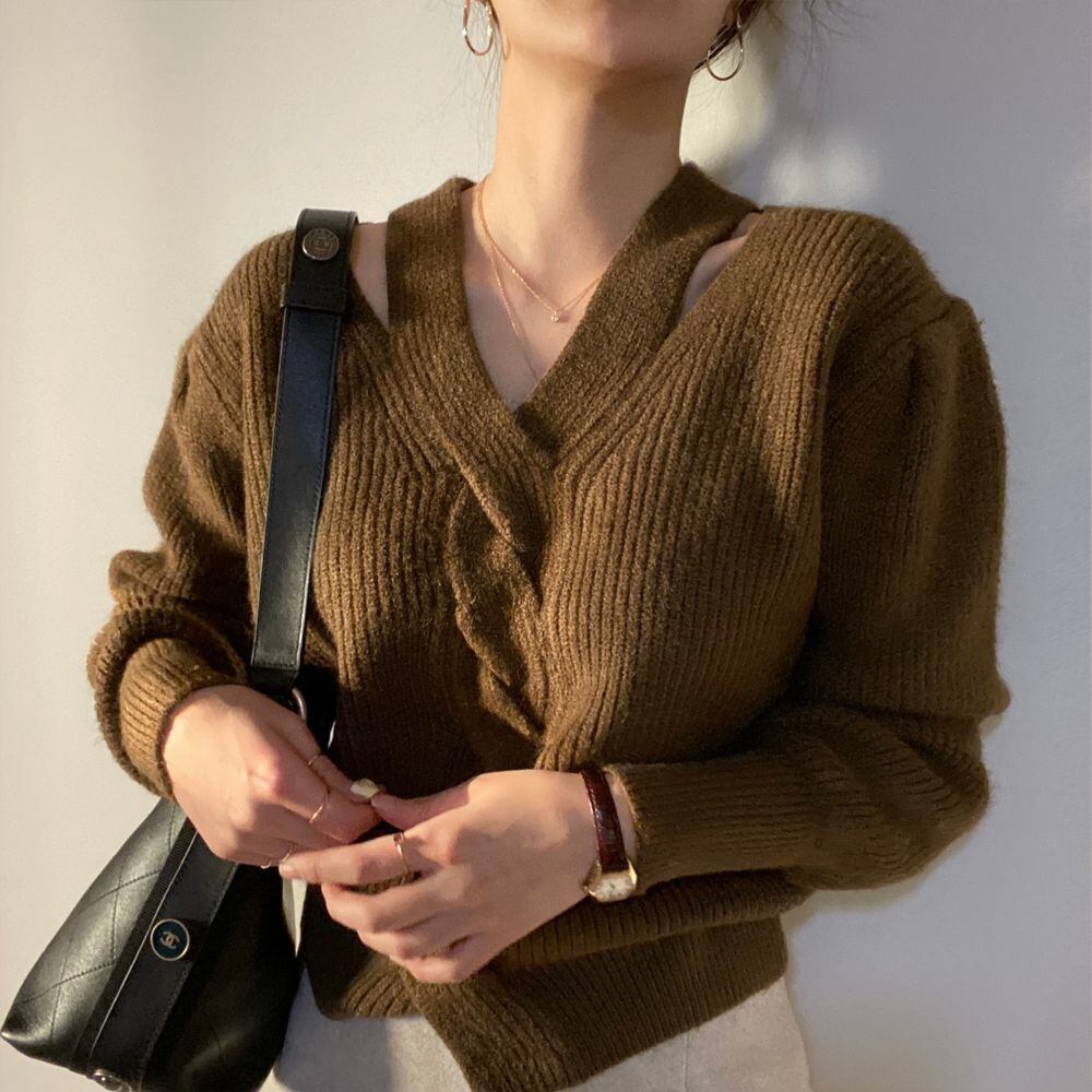 スプリングオータムスタイルクロスプルオーバー セーター トップス レディース ロング 春物 秋物 韓国婦人2914314301