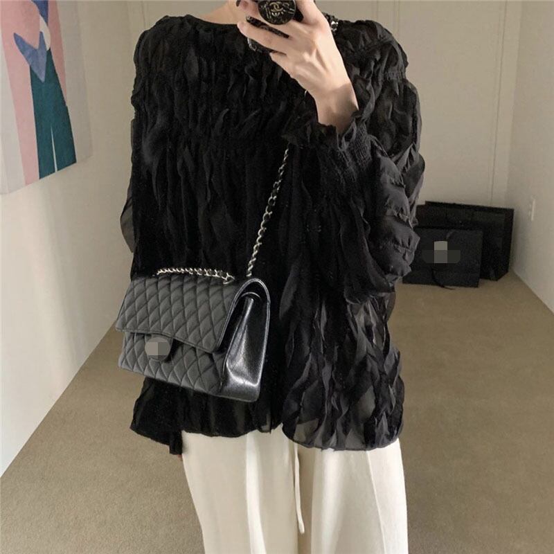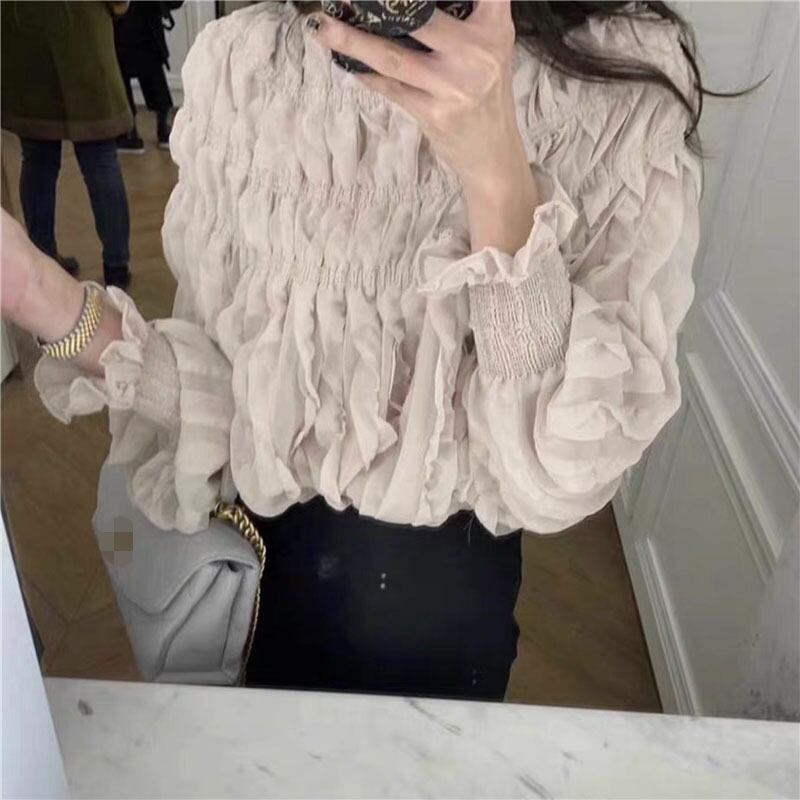 ブラウス レディーススプリングスタイルラウンドネックルーズスリーブシャツ ランタンスリーブ 春物 Oネック 韓国婦人7863509479