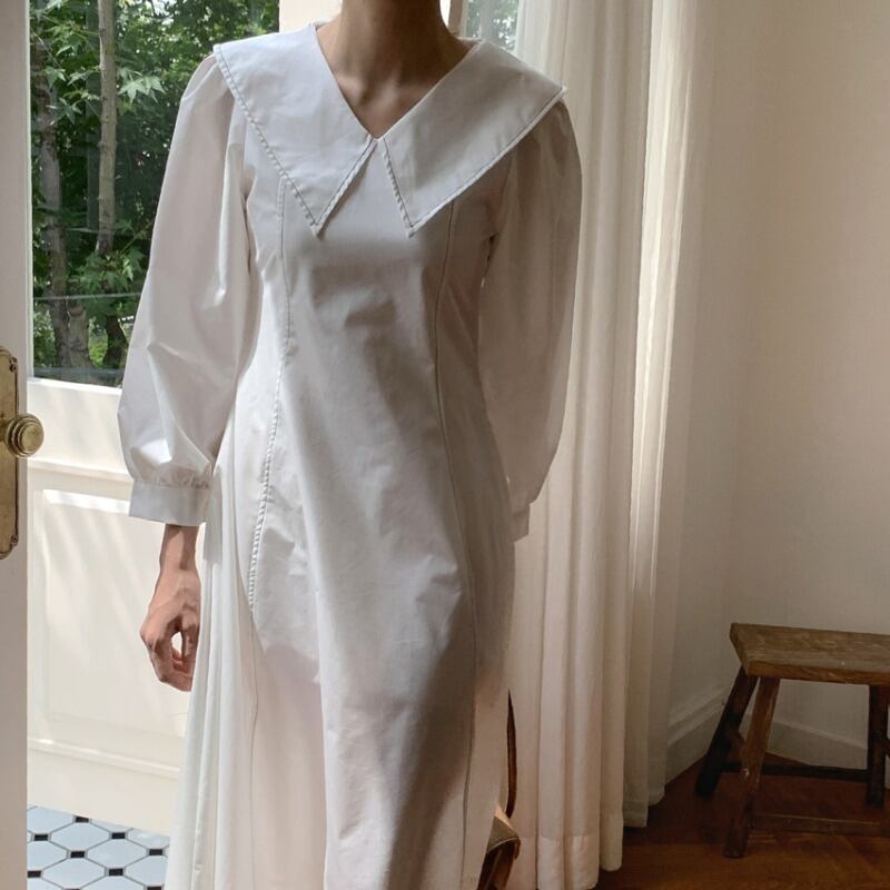 ライン薄手ウェストスリーブドレス エレガント 韓国婦人43500665915
