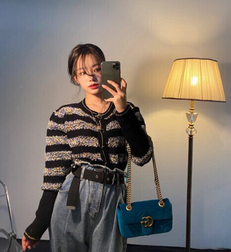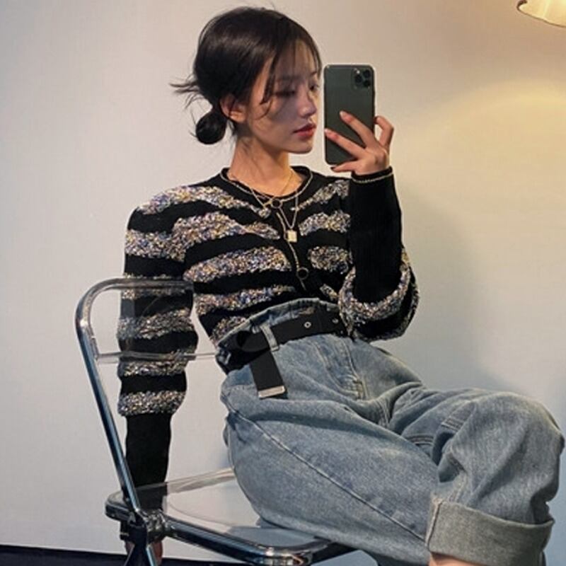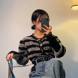 オータムスタンダードラウンドネックニットカーディガンセーター レディース レトロ 秋物 Oネック ステッチ 韓国婦人5816189668