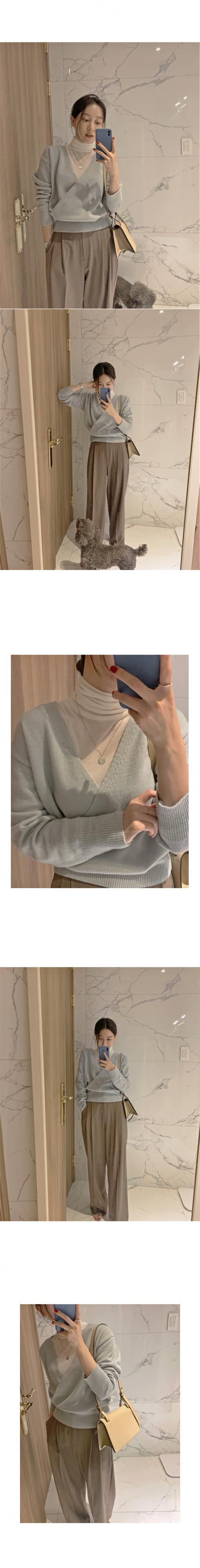 色:白いTシャツ,水色のセーター,コーヒーカラーパンツS,コーヒーカラーパンツM