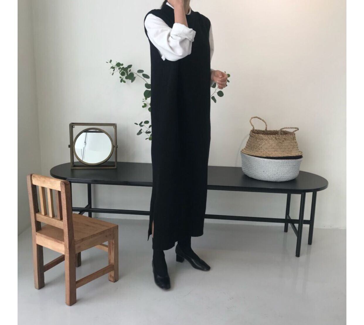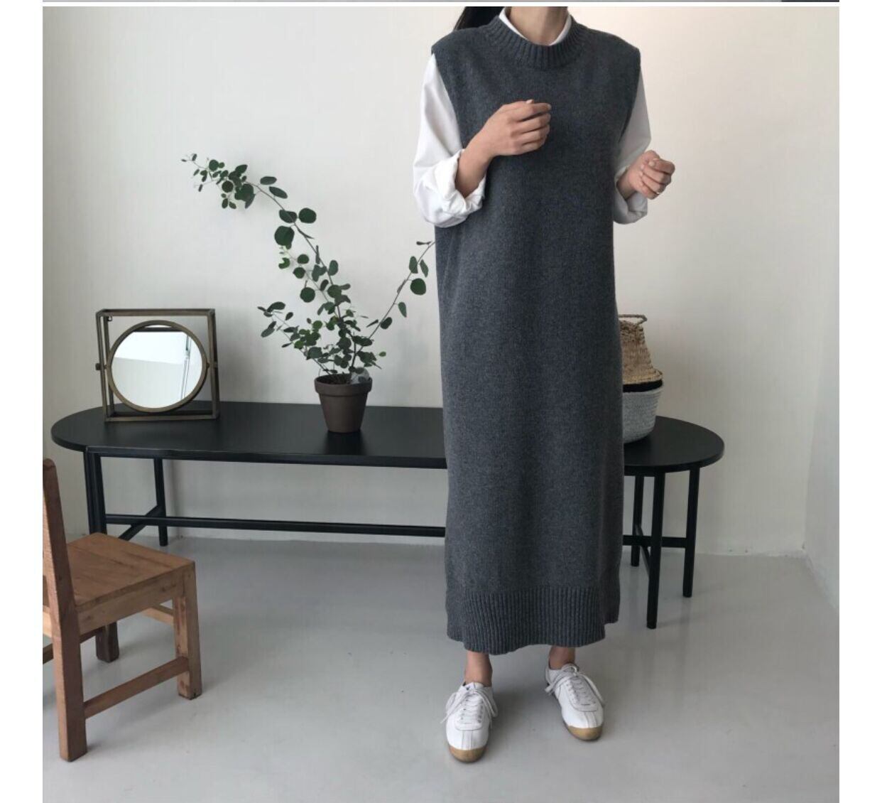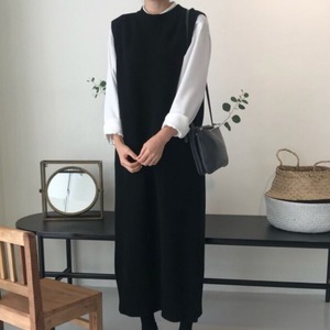 オータムラウンドネックルーズノースリーブセーター ドレス ロングニット 秋物 Oネック 韓国婦人59349062020