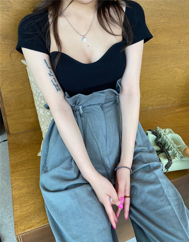 スタンダードスタイルカラーショートニットセーター レディースサマートップス レトロ レース 夏物 スクウェア 韓国婦人28608590608