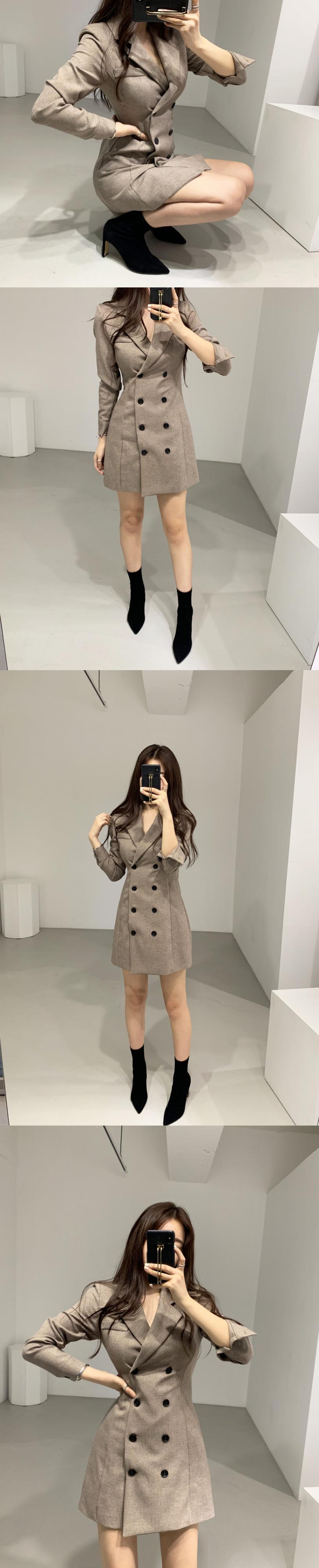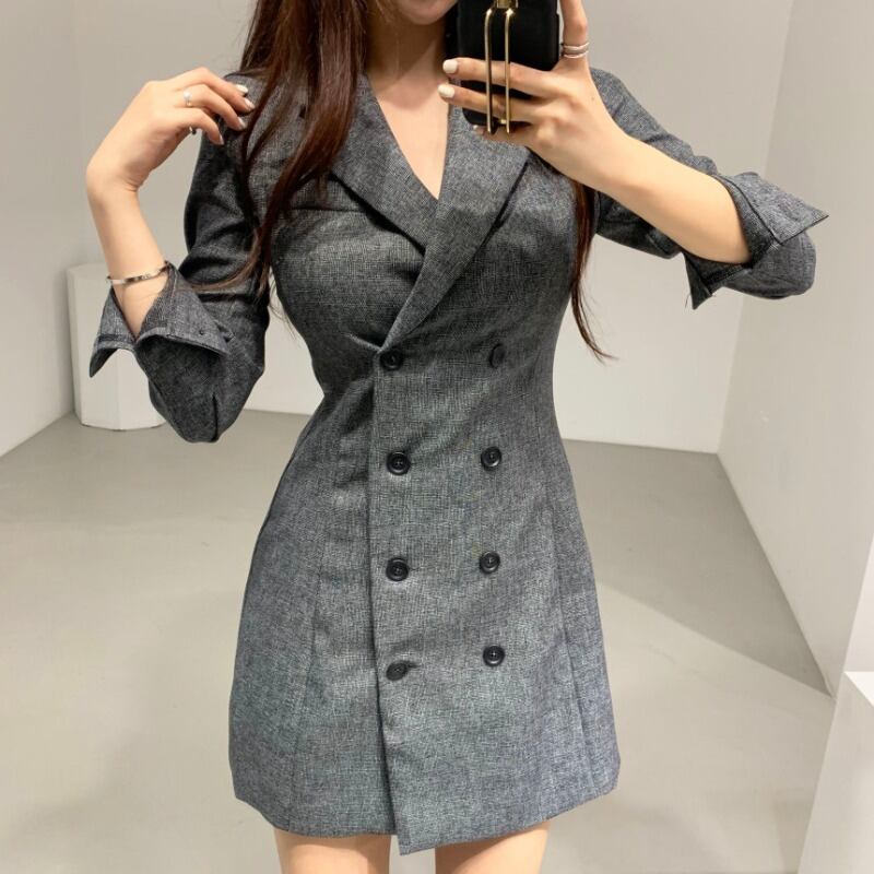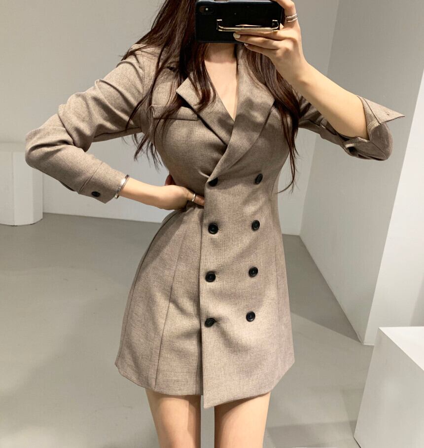 スプリングダブルブレストスリムウェストAラインドレス ショートスカート 春物 韓国婦人46498159836