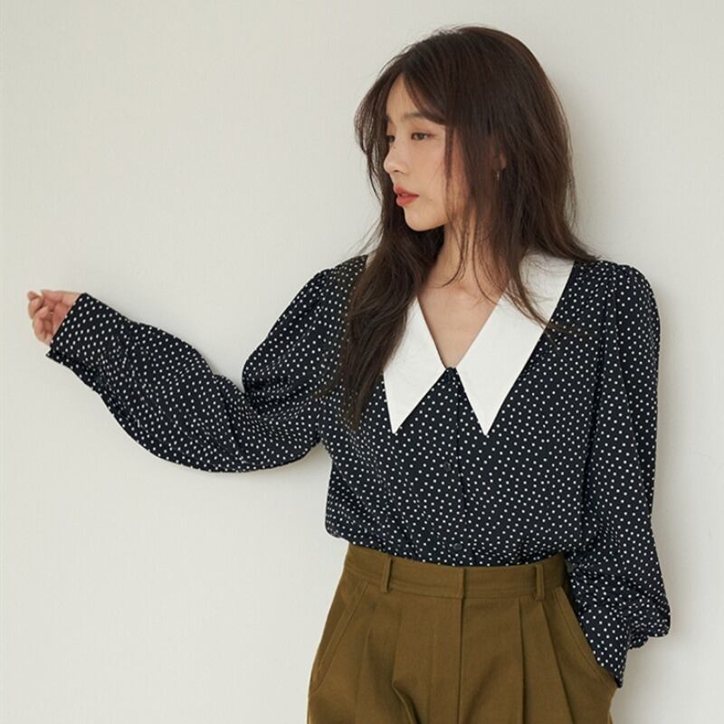 オータムスタンダードカラールーズシャツ レディース ロング レトロ 秋物 韓国婦人47063300226