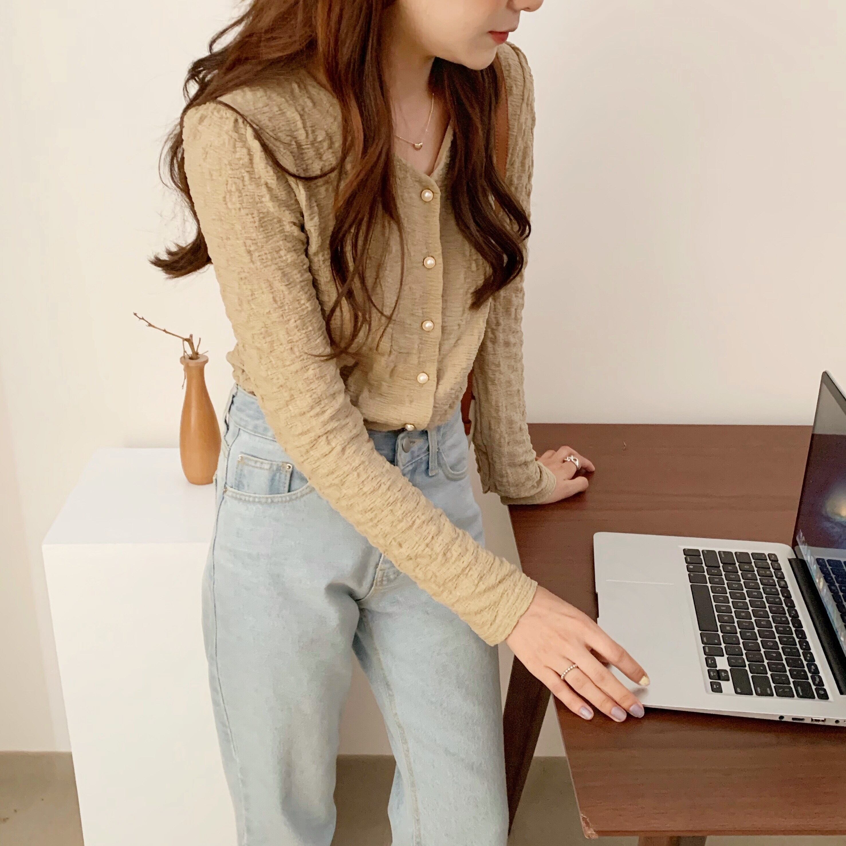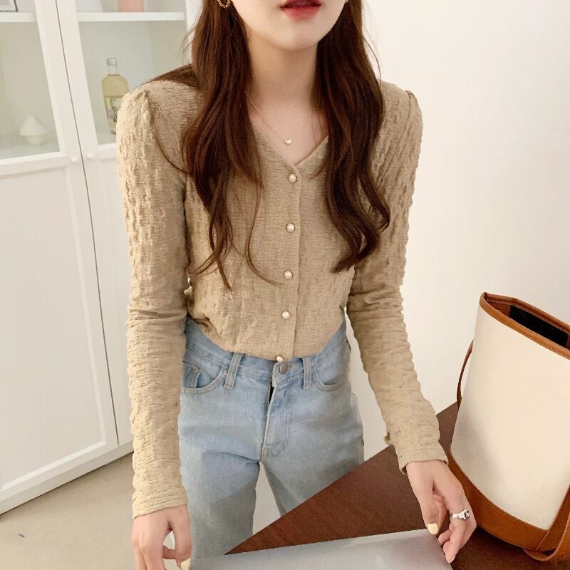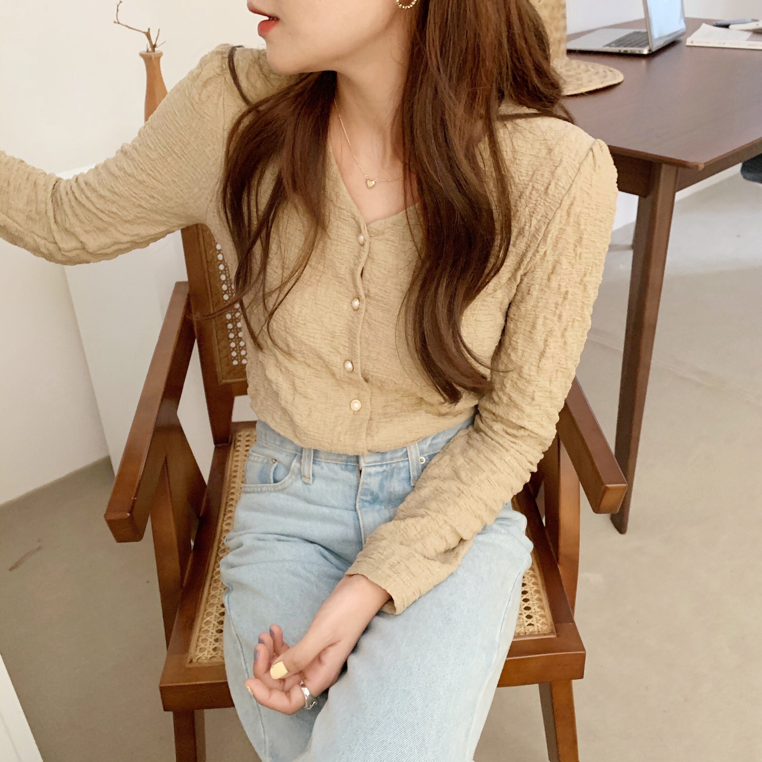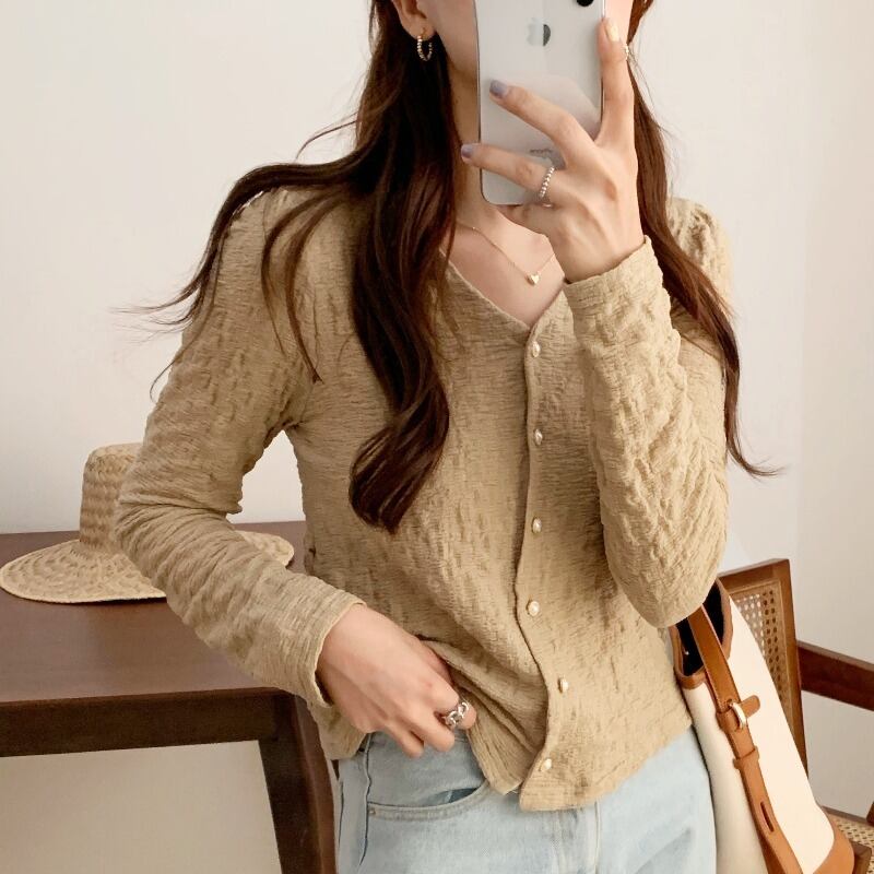 スプリングVネックショートトップス スタイルニットカーディガン ロング 春物 韓国婦人39674393743