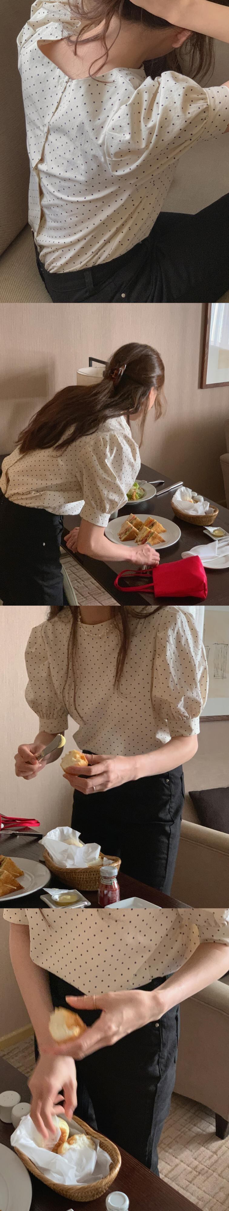 スタイルラウンドネック水玉スリーブシャツ トップス サマー 夏物 Oネック 韓国婦人56785840363