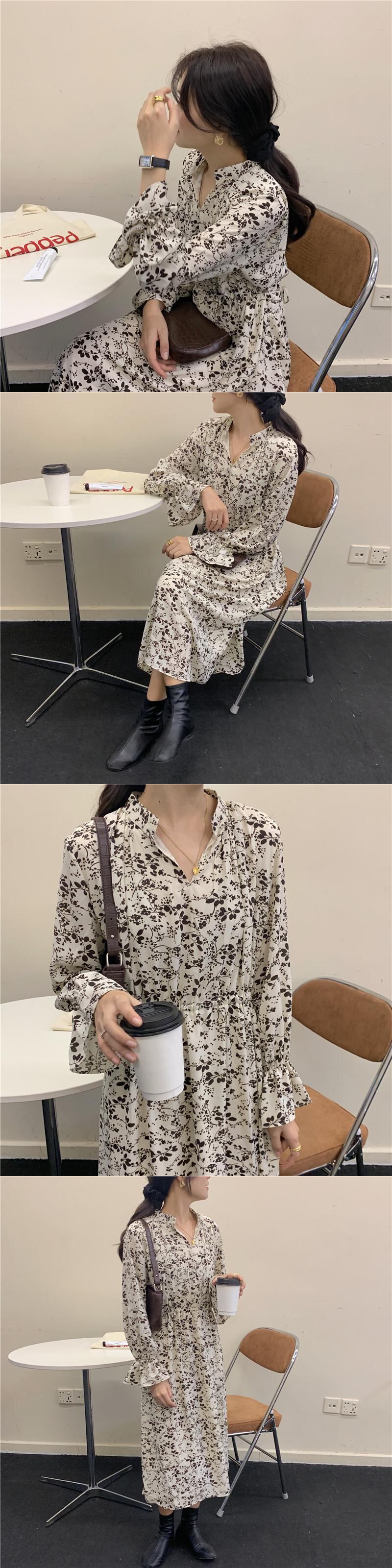 スプリングドレス スタンダードフローラルウェストベルト レトロ 春物 ハーネス 花柄 韓国婦人65918850988