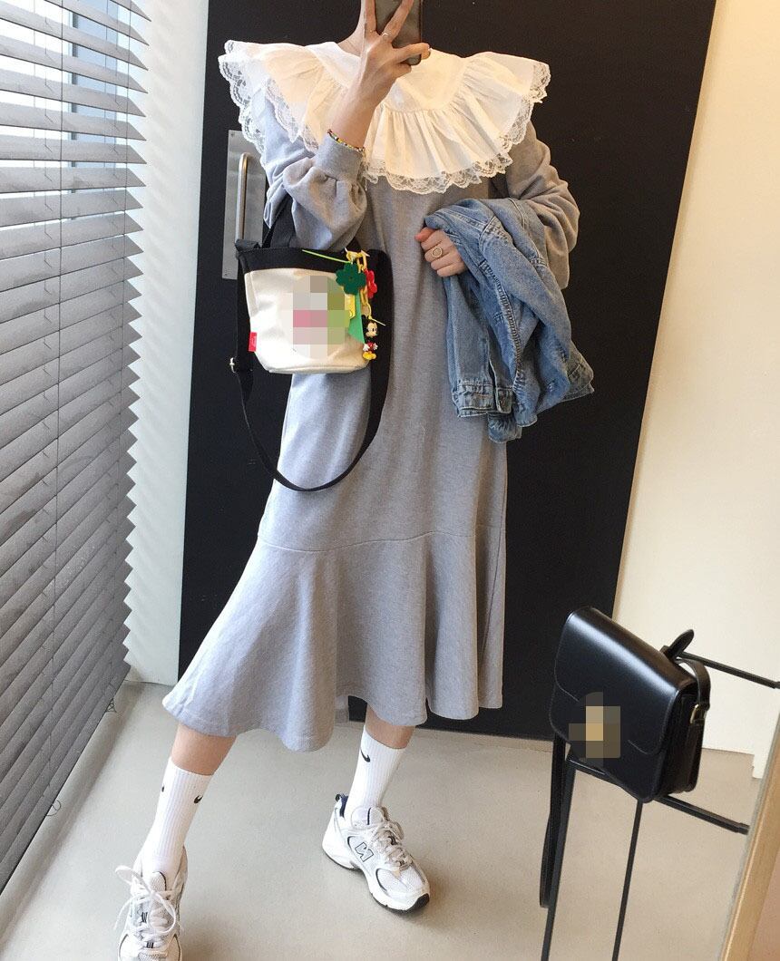 オータムレースカラーセーター 長袖スリーブドレス ロング 秋物 韓国婦人68937093687