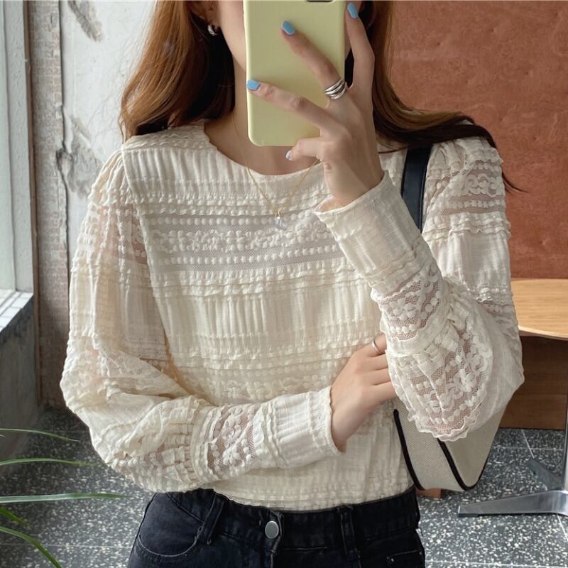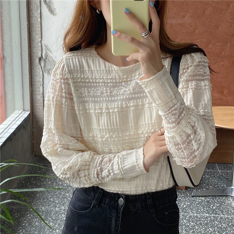 スプリングスリーブレースシャツ ブラウス レディース エレガント 春物 韓国婦人70349016654