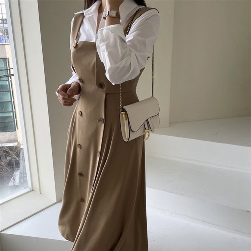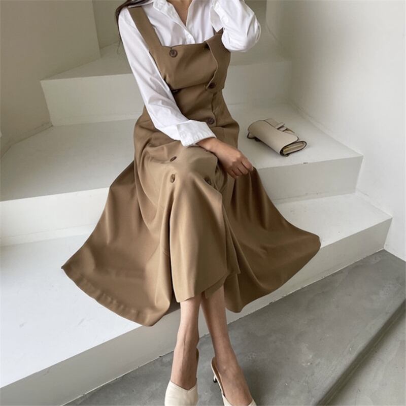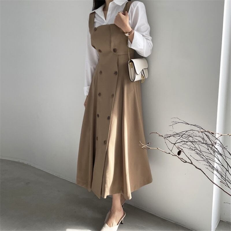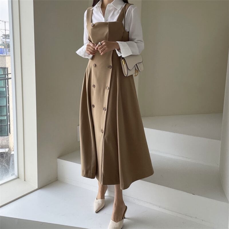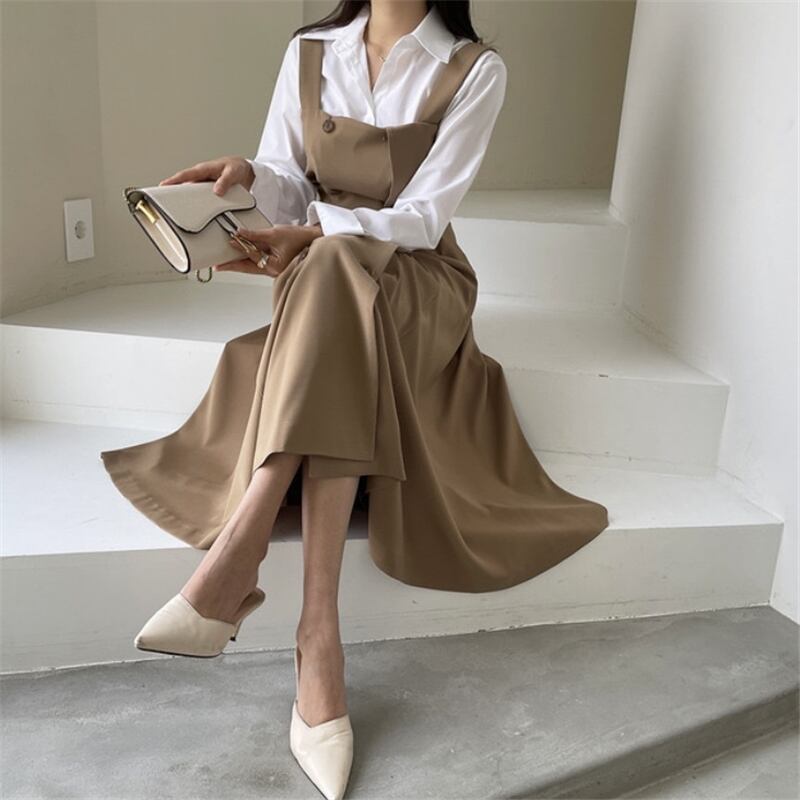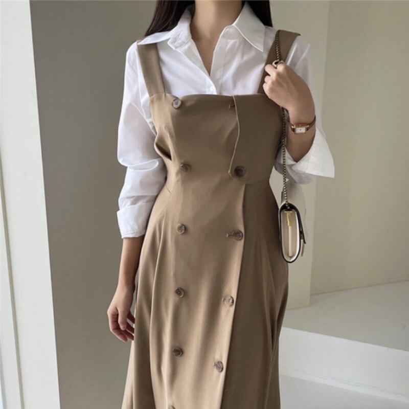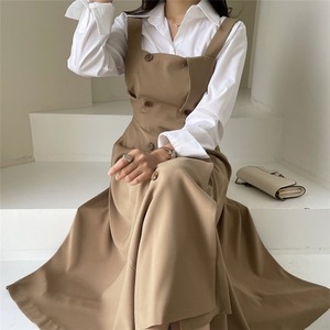レッドベーシックシャツ ドレス ロング 韓国婦人10066145209