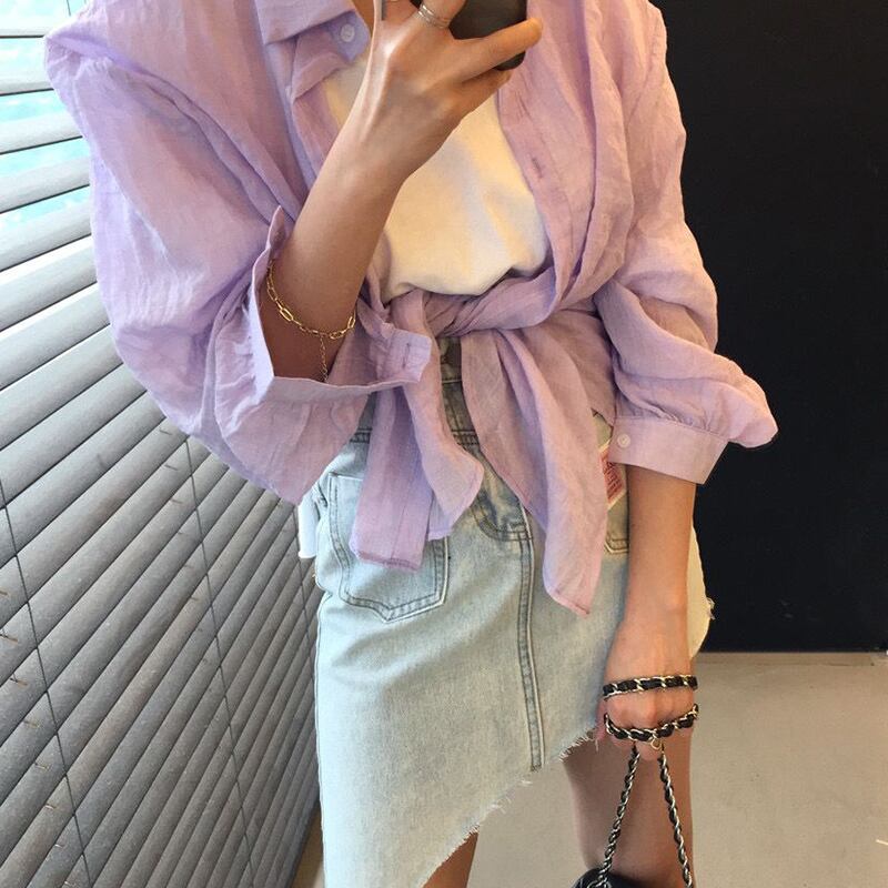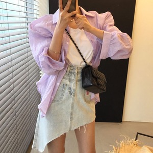 サマースタンダードシャツ レディースルーズカーディガン ロング レトロ 夏物 韓国婦人5535269752