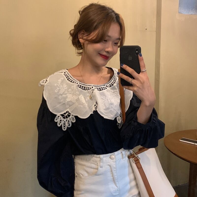 スプリングスタイルルーズ薄手ラウンドネックカラーシャツ レディース ロング 春物 Oネック 韓国婦人28427645654