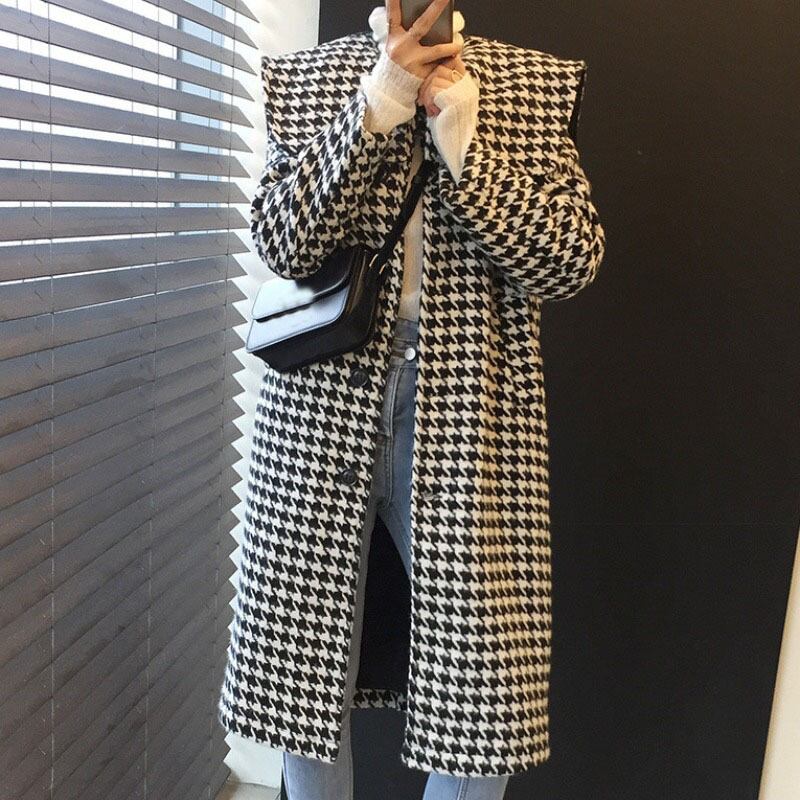 オータムスタンダードロング長袖スリーブツィードコート レディース レトロ 秋物 韓国婦人17565837615